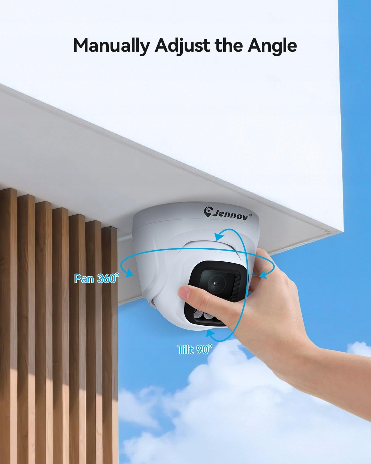 Jennov 5MP Kamera do monitoringu zewnętrznego, kamera dodatkowa, szeroki kąt 120°, nagrywanie 24/7, kolorowe widzenie nocne, wykrywanie ruchu, kompatybilna tylko z Jennov WiFi NVR
