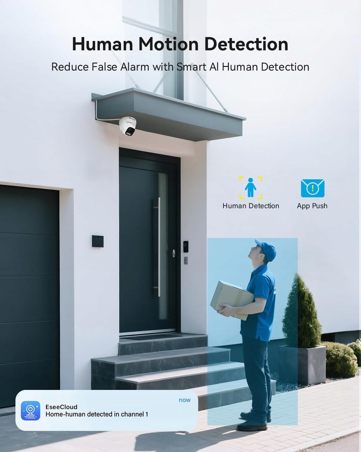 👍【Nagrywanie 24/7 i dwukierunkowe audio】Nowy system kamer monitoringu 5MP oferuje nagrywanie 24 godziny na dobę dla ciągłego rejestrowania wideo monitorowanego obszaru, zapewniając dokumentację aktywności w czasie rzeczywistym dla zwiększonego bezpieczeństwa. Dzięki wbudowanemu mikrofonowi i głośnikowi możesz prowadzić rozmowy na żywo z osobami w obszarze monitoringu. Ta funkcja umożliwia bezpośrednią komunikację z rodziną, gośćmi lub pracownikami z dowolnego miejsca.