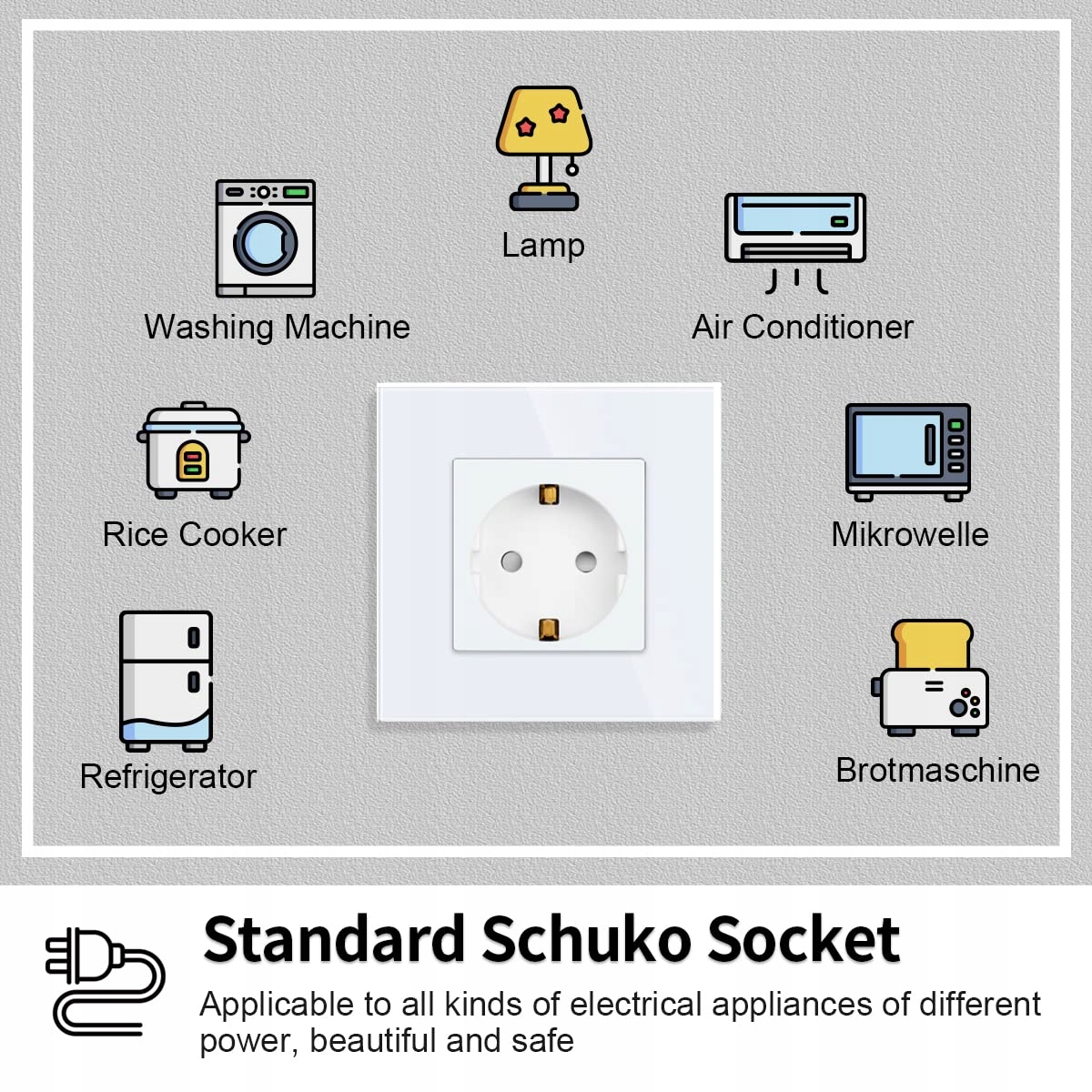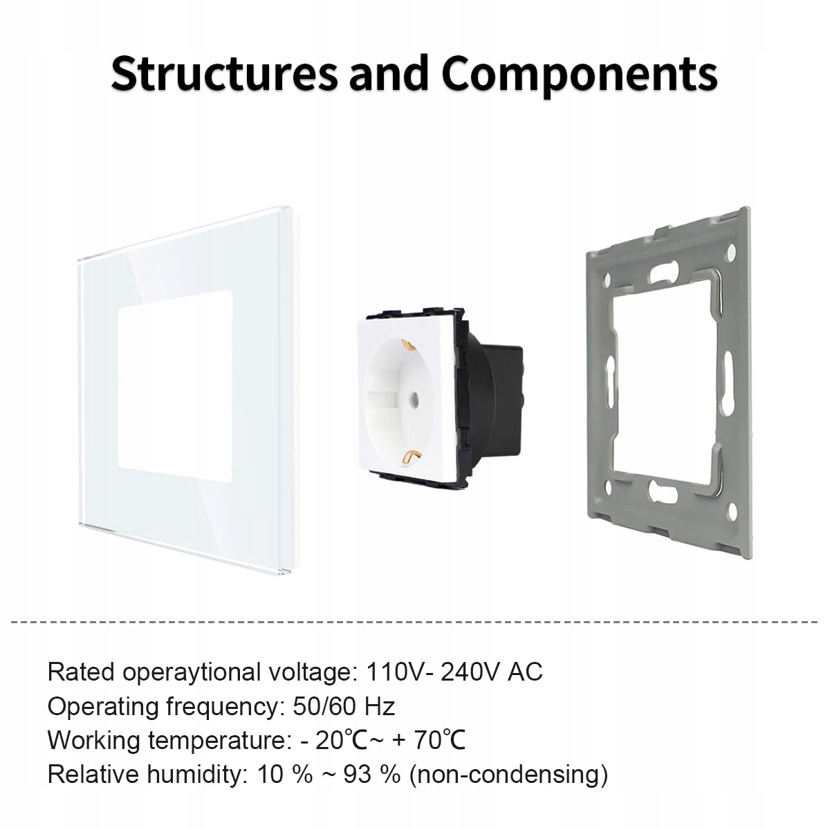 【Standardowe gniazdo】To gniazdo o jakości mieszkalnej ma maksymalną moc znamionową 250 VAC/16 A i obsługuje większość urządzeń domowych, certyfikowane CE / RoHS.