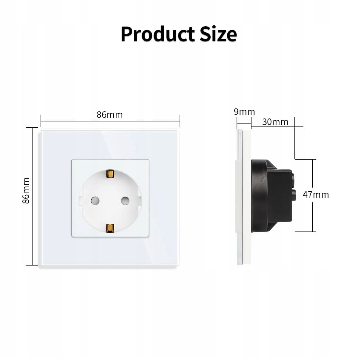 【Łatwiejszy montaż】 86 mm * 86 mm, płyta zatrzaskowa bez śrub; głębokość puszki montażowej 30 mm. Materiały montażowe i instrukcje są dołączone do przesyłki.