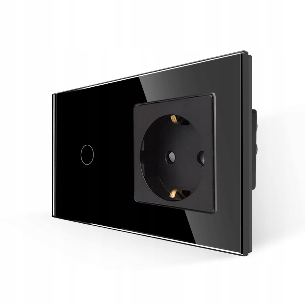 JIMEIDA Czarny Szklany Dotykowy Włącznik Światła z Gniazdkiem Schuko | Premium Supply