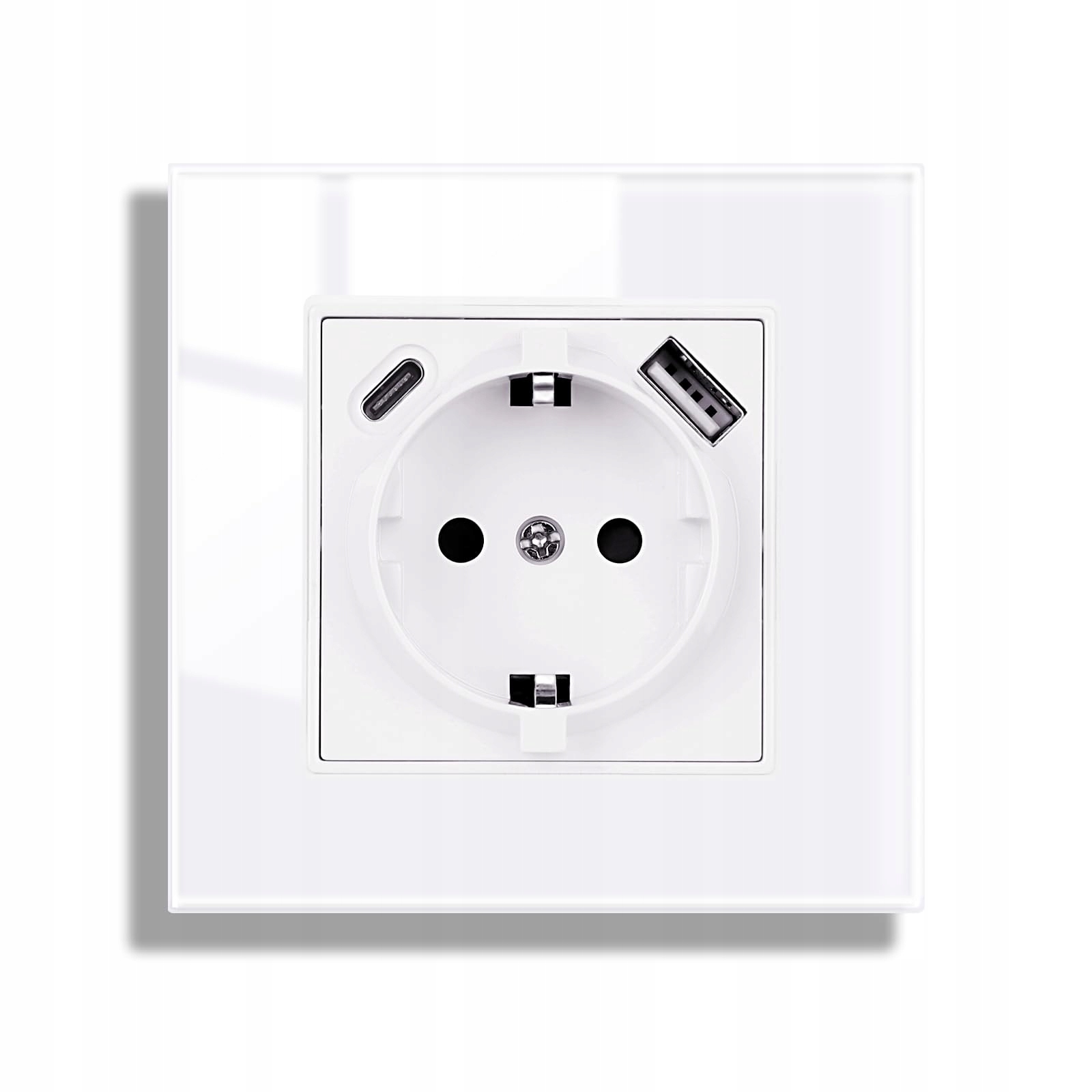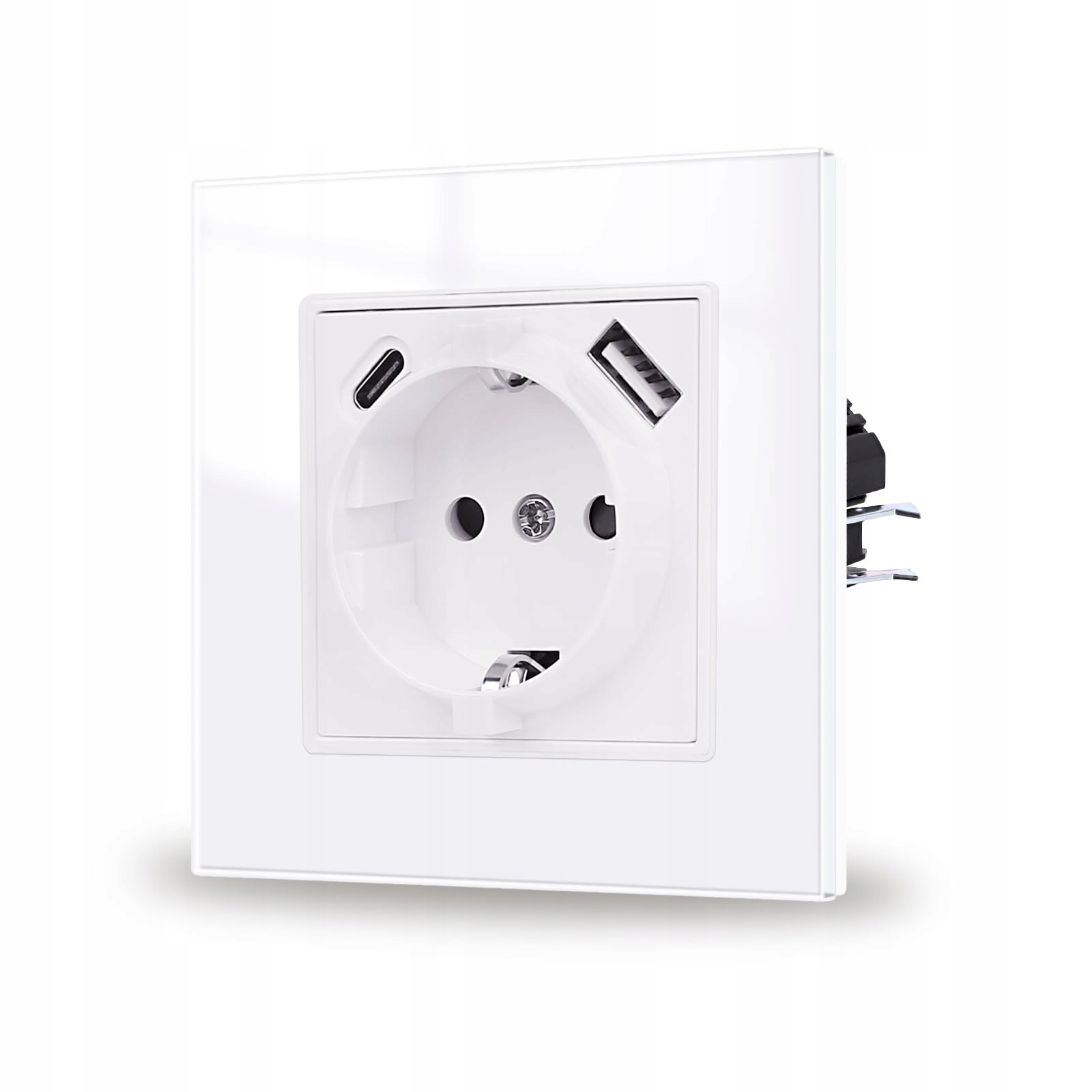 JIMEIDA Gniazdko Szklane USB Białe Podtynkowe USB A i C 16A 250V 1 Gniazdo