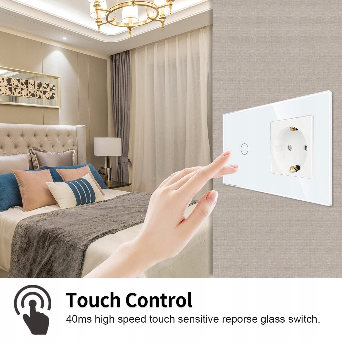 JIMEIDA Gniazdko Z Włącznikiem Dotykowym Białe Szklane Z LED 500W | Premium Supply