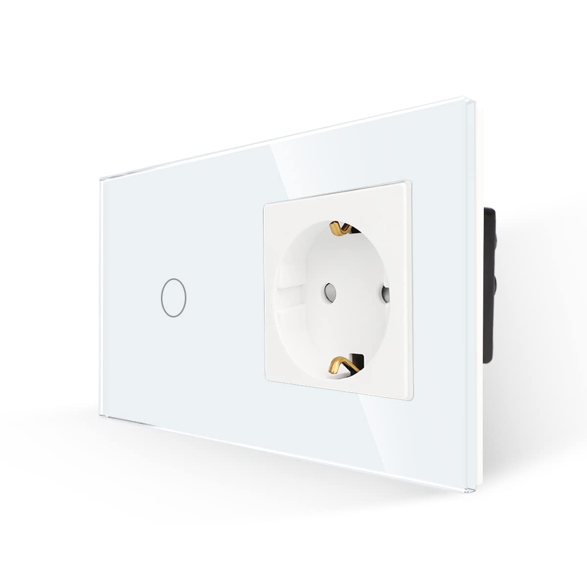 Gniazdko JIMEIDA z włącznikiem światła Białe, szklany dotykowy włącznik światła z gniazdkiem Schuko podtynkowym, 1-fazowy 1-biegunowy włącznik ścienny z diodą LED stanu, 500 W/fazę