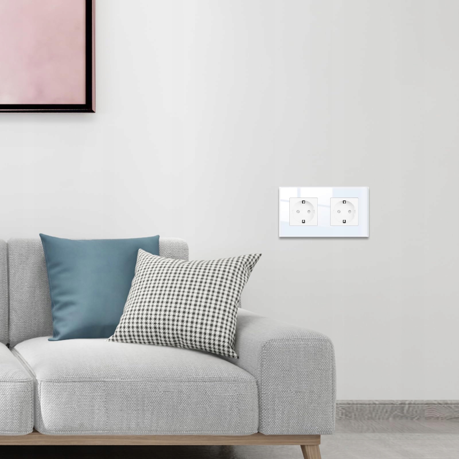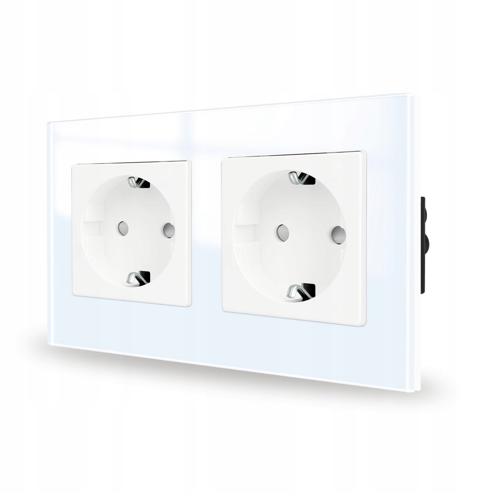 Gniazdo podwójne JIMEIDA ze szkła w białym kolorze, 2 gniazda Schuko z zabezpieczeniem, gniazdo ścienne 16Amp, 250V, 157mm*86mm