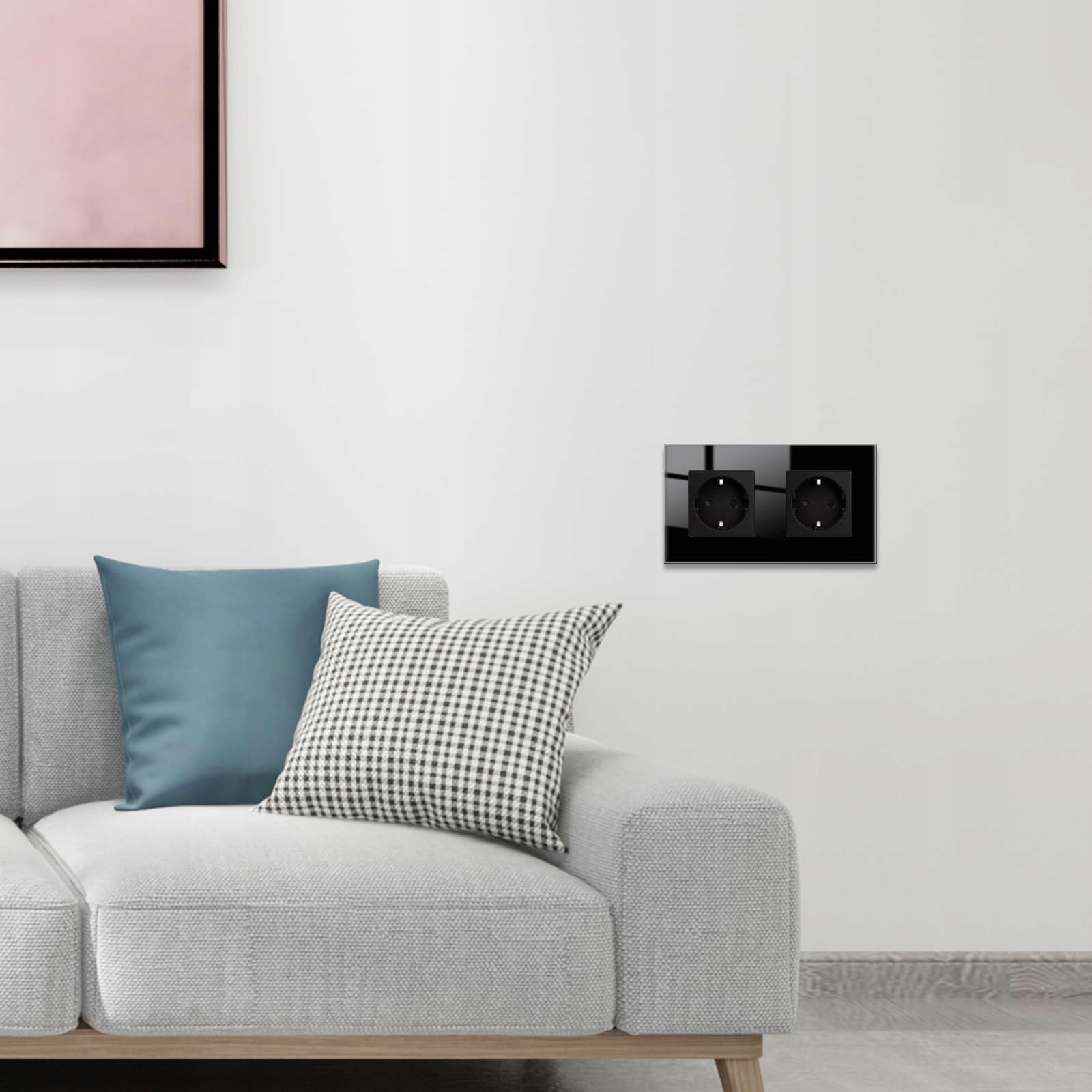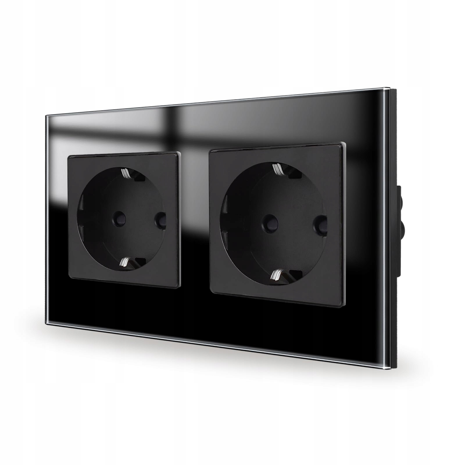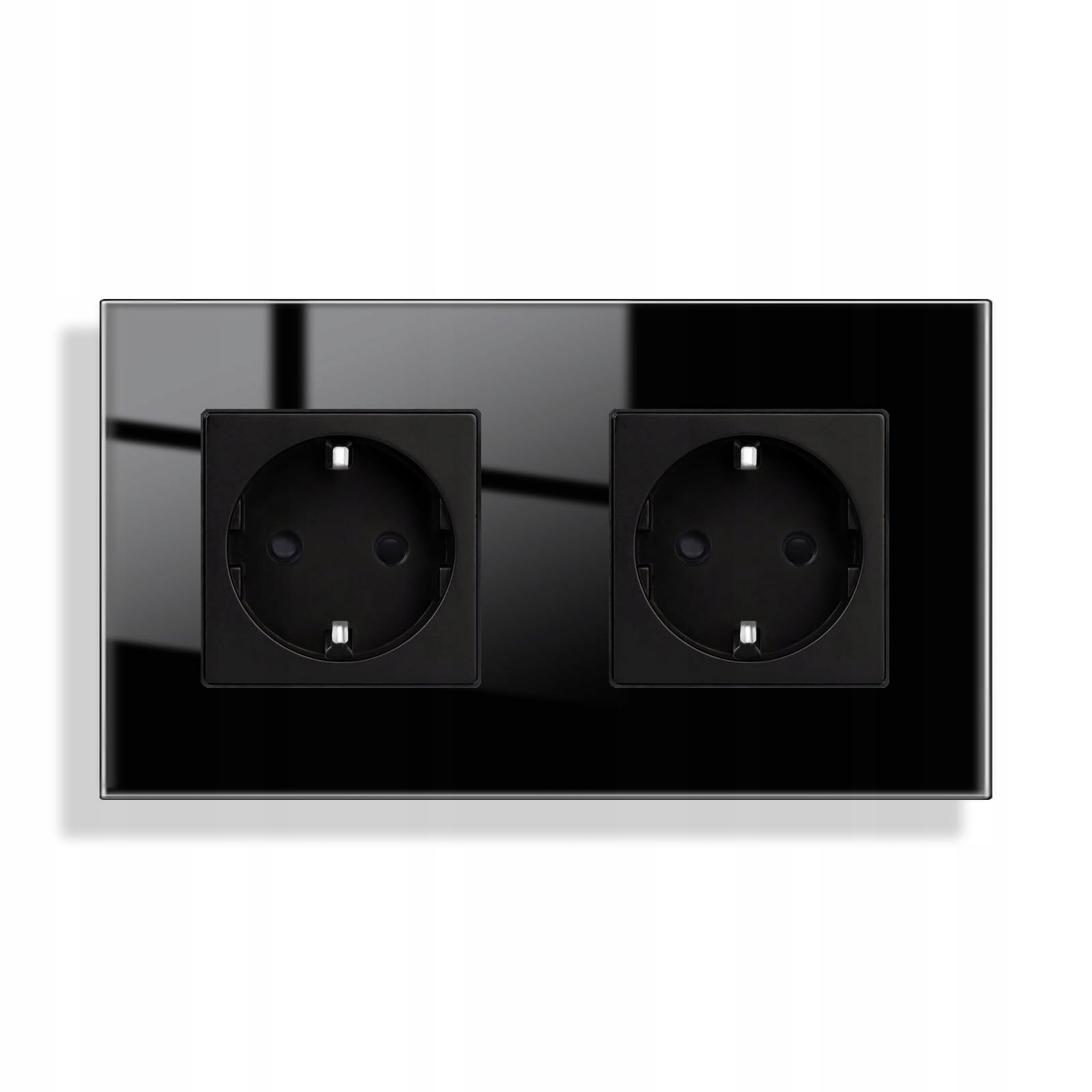 Gniazdko podwójne JIMEIDA ze szkła w kolorze czarnym, 2 gniazda Schuko, gniazdo ścienne z zabezpieczeniem, 16A, 250V, 157mm*86mm