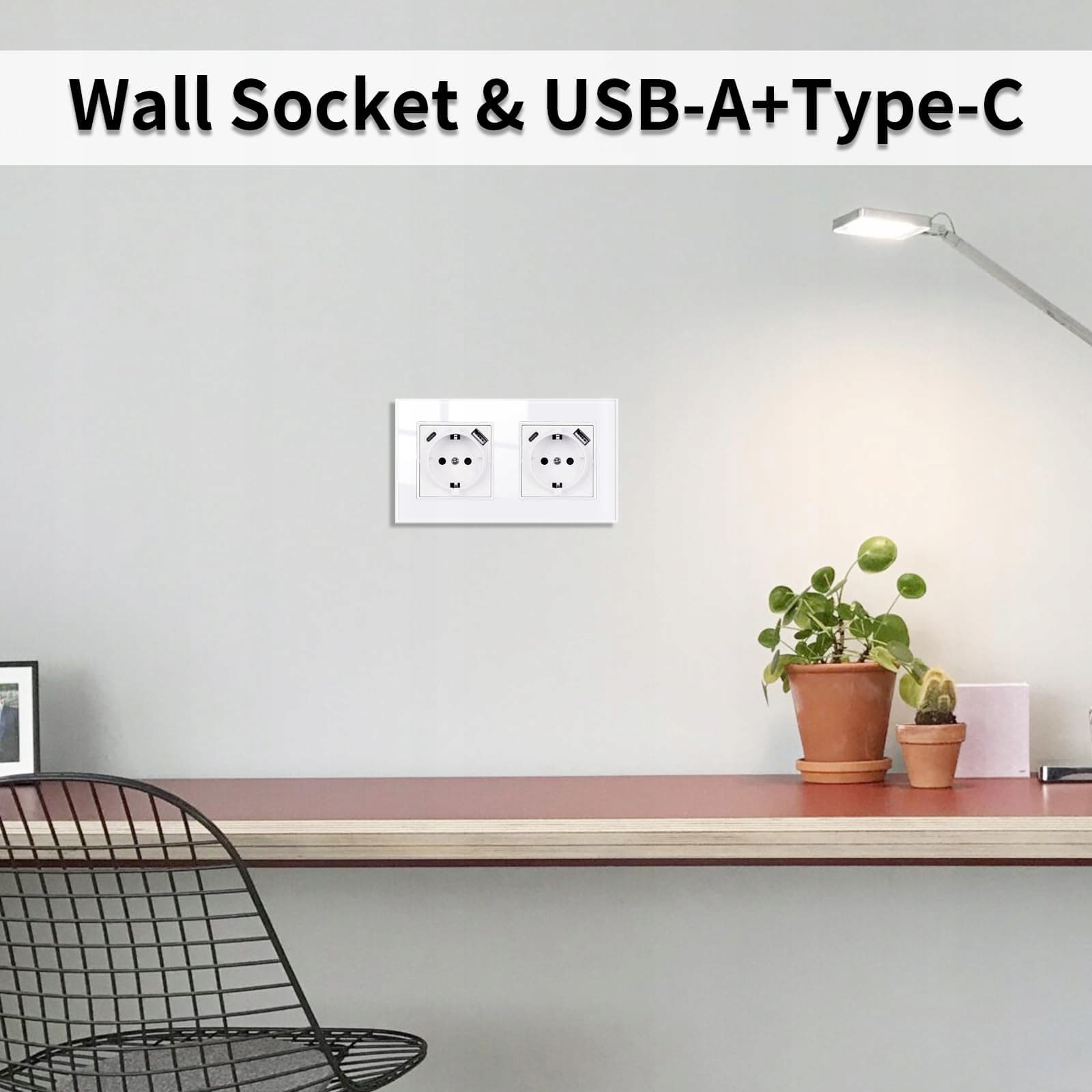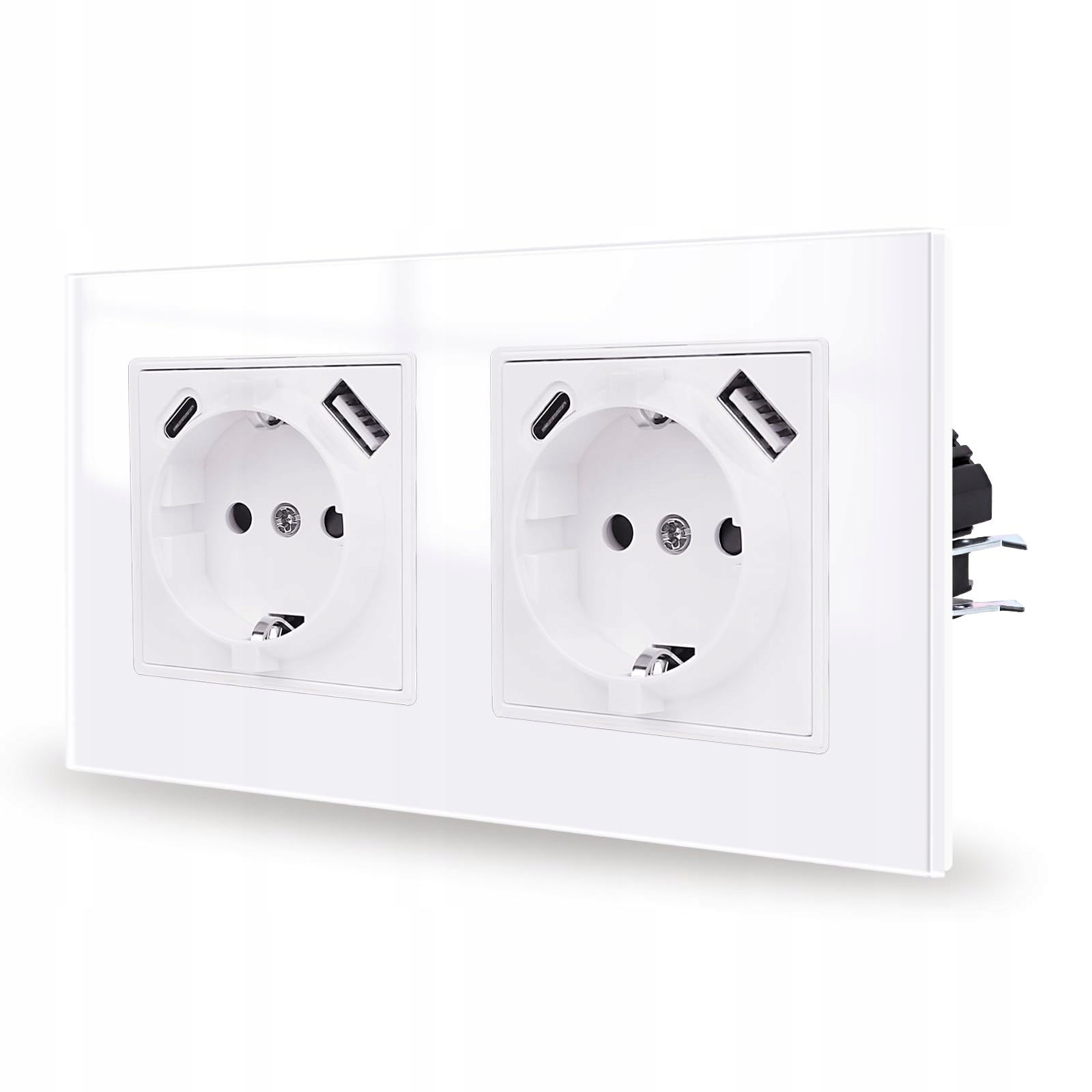 Gniazdo JIMEIDA z podwójnym gniazdem USB białe podtynkowe, port USB A i typ C max. 2,1 A, 16 Amp hartowane szkło gniazdo 157 mm*86 mm, 2 gniazda, 250 V