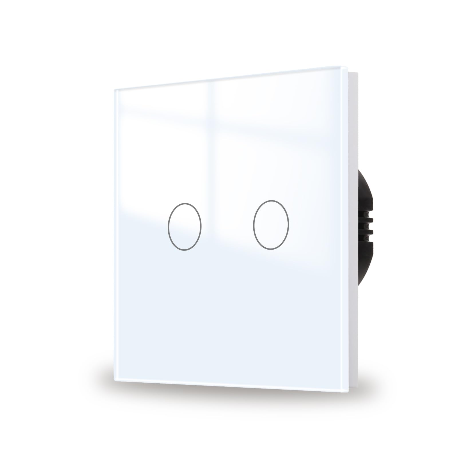 JIMEIDA Touch włącznik światła 2-krotny 1-kierunkowy z białym podtynkowym, szklanym panelem i diodą LED statusu, AC 240 V, 500 W, 86 mm, bez wymaganego przewodu neutralnego