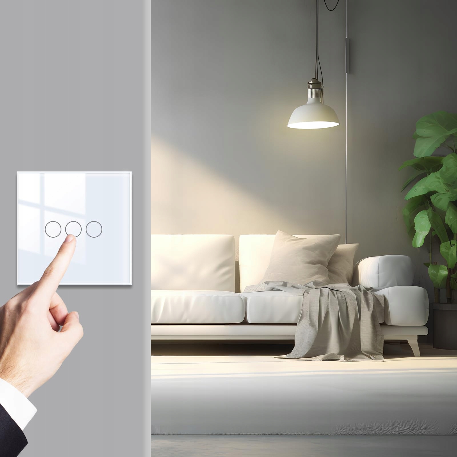 JIMEIDA Włącznik Dotykowy 3-Kanałowy Bez Przewodu Neutralnego Szklany Panel