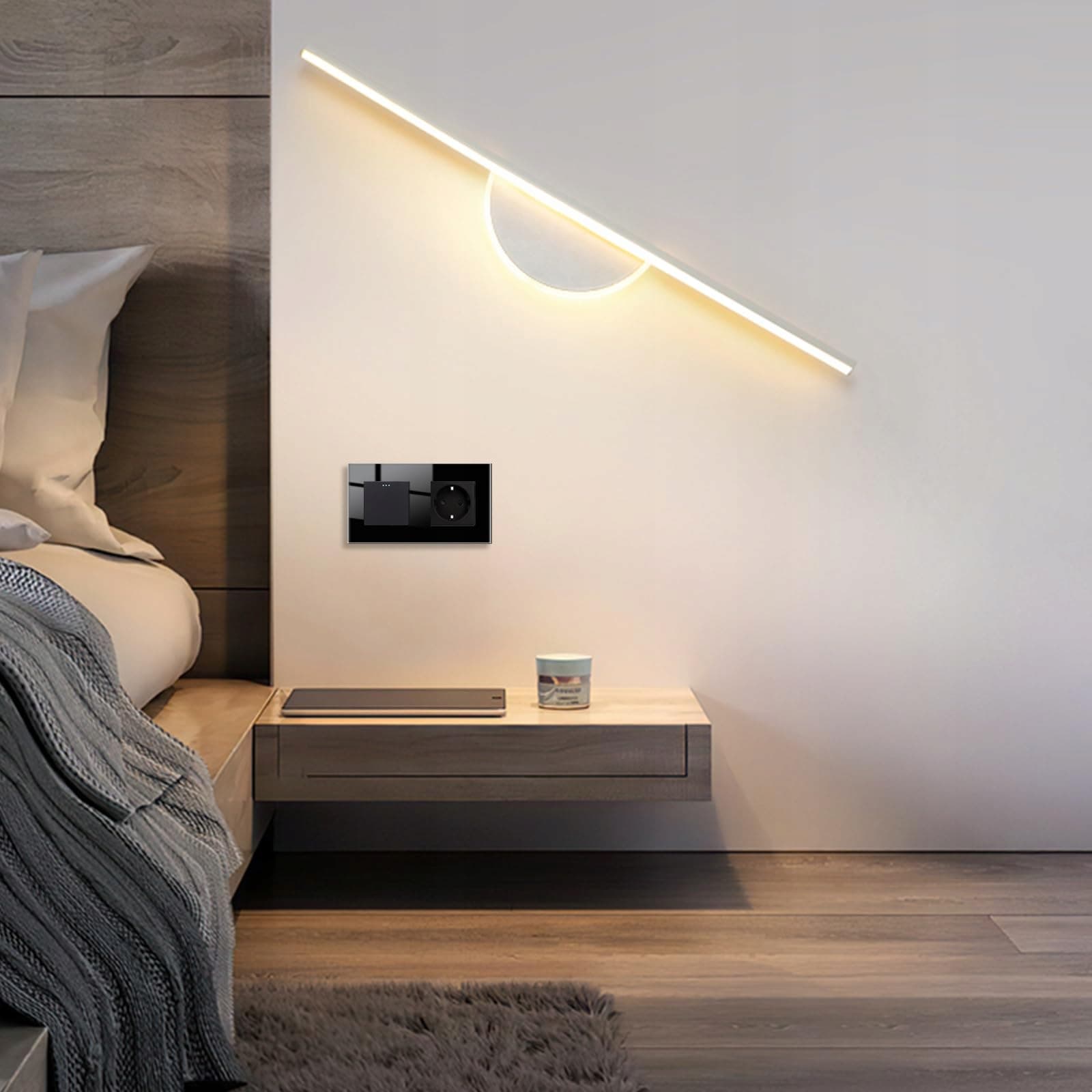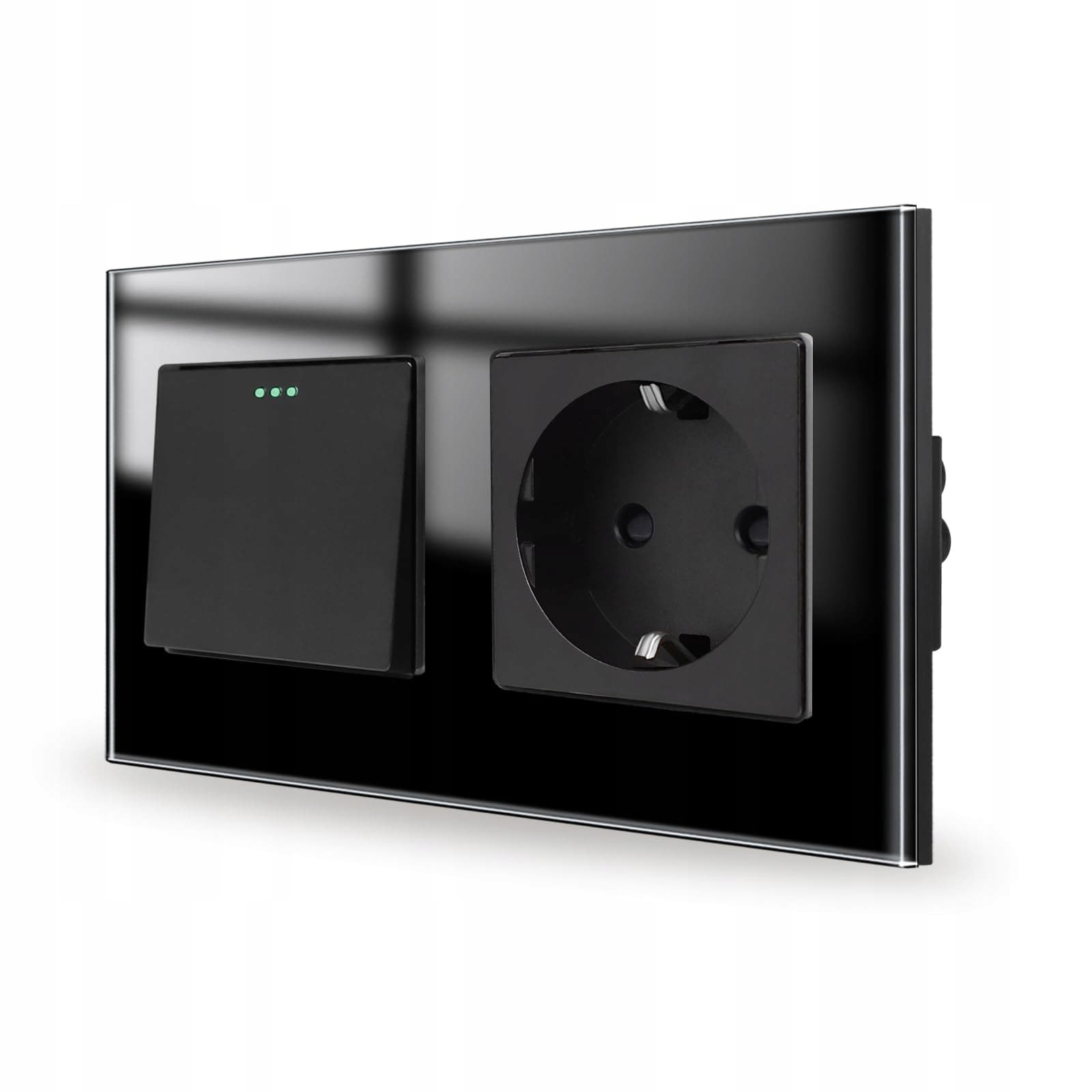 JIMEIDA Włącznik Światła Z Gniazdkiem Czarny Szklany 1 Droga 10A 250V | Premium Supply