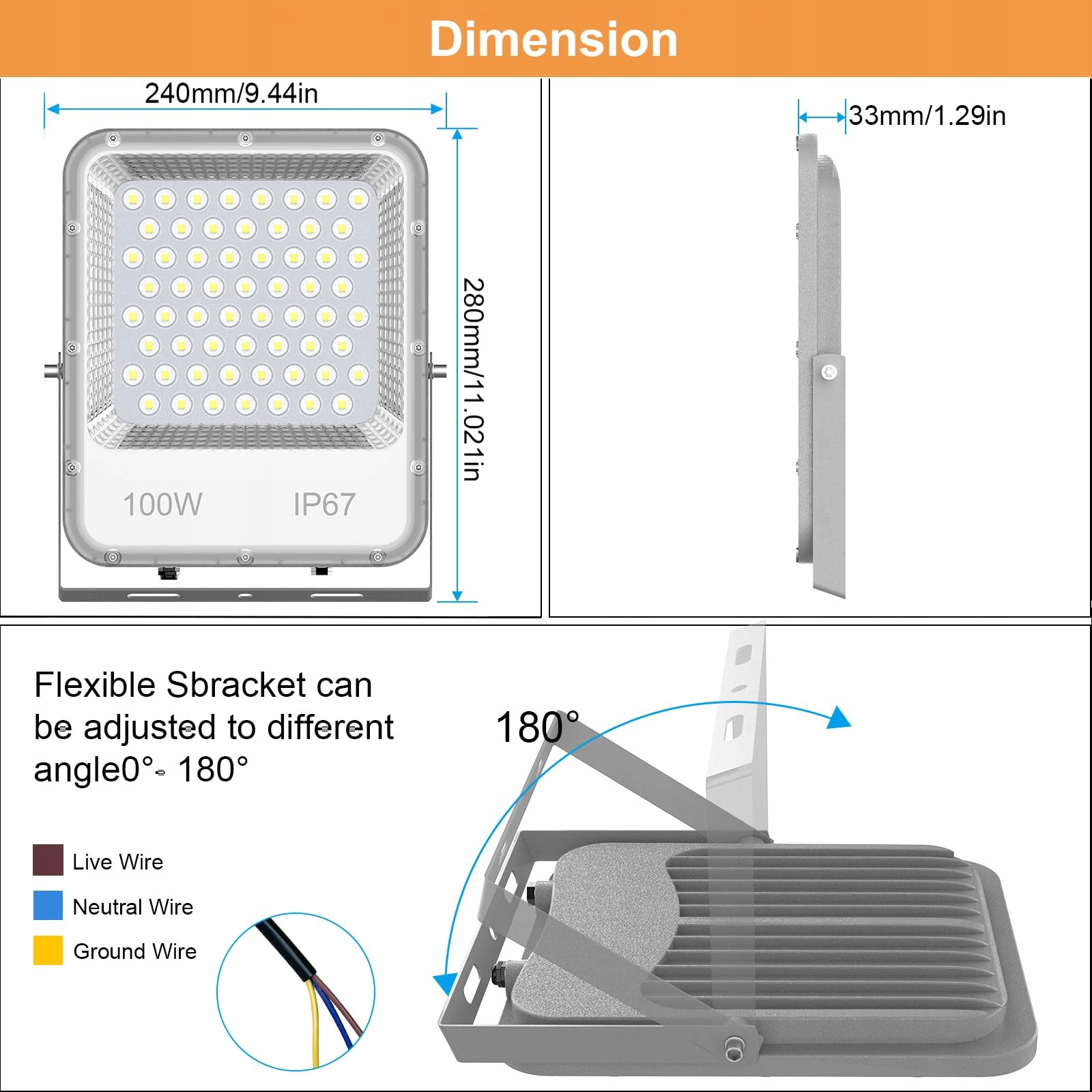 💡【Ultra jasny i energooszczędny】Reflektor LED z 60 superjasnymi diodami LED wykorzystuje diody 2835 SMD oraz nowy reflektor, który zwiększa obszar oświetlenia i redukuje niepożądane odbicia i załamania światła oraz poprawia jasność o 30%. Przy mocy 100W reflektor osiąga jasność 10000lm, co oznacza 85% mniejsze zużycie energii w porównaniu z podobnymi lampami halogenowymi.