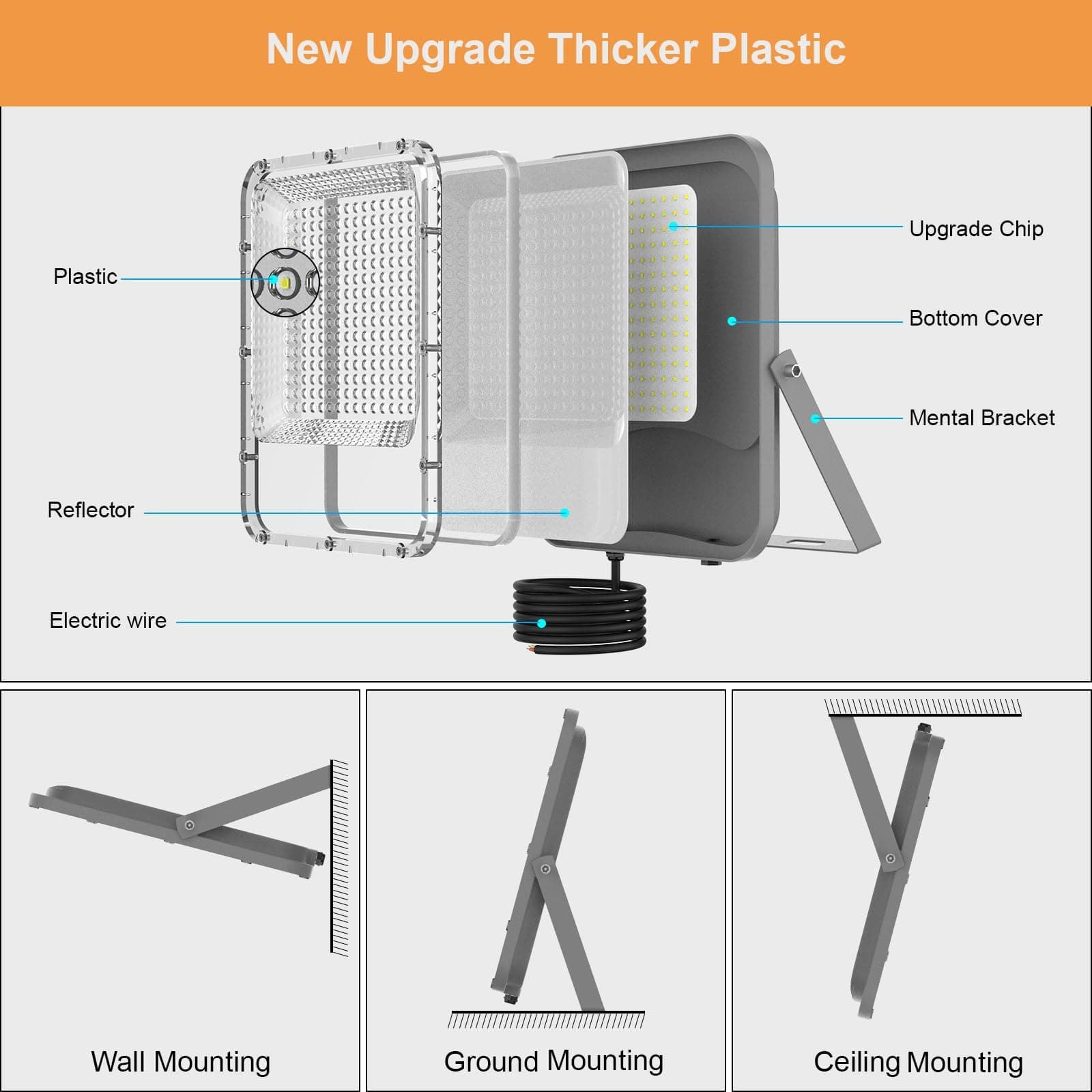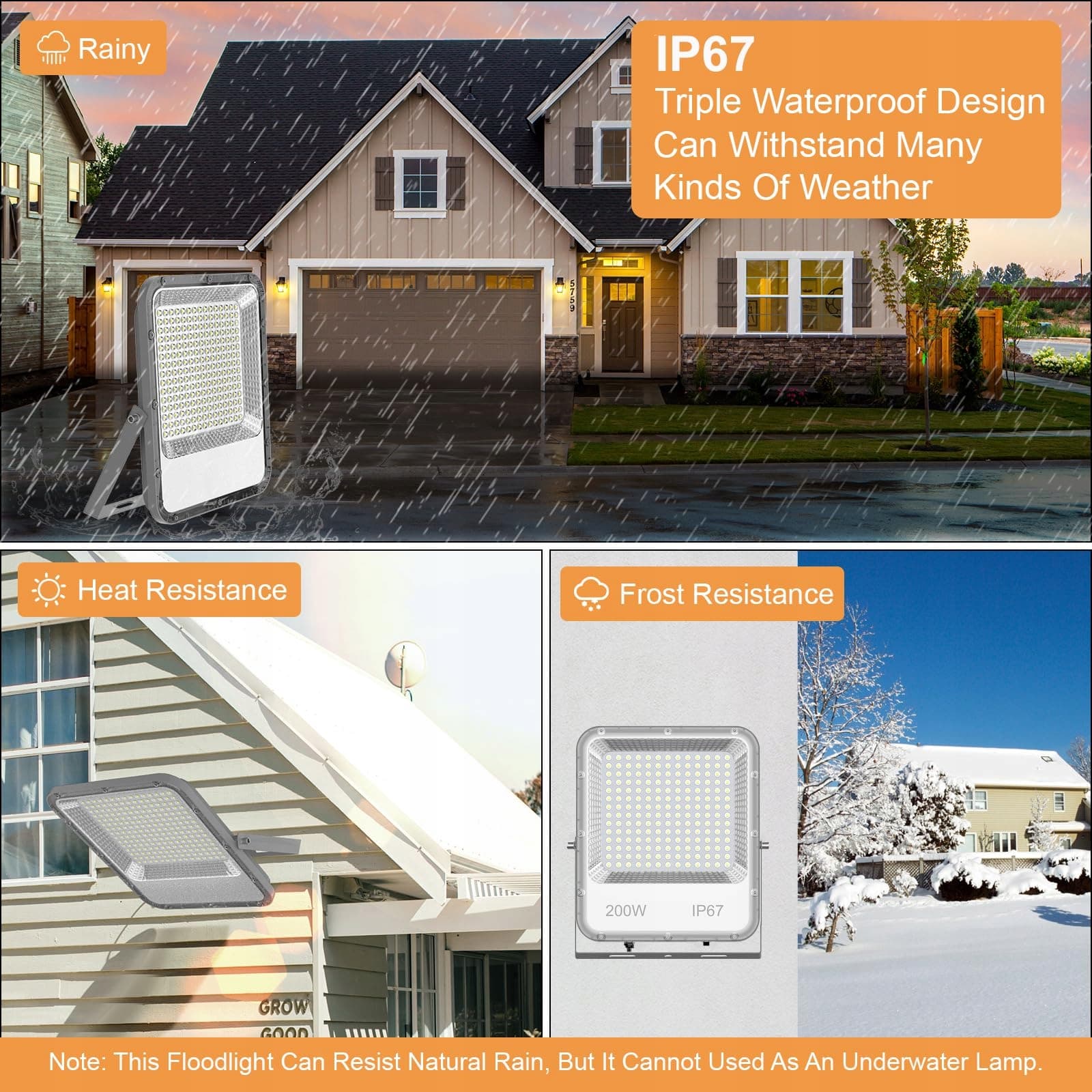 💡【Wodoodporny IP65】Reflektor LED na zewnątrz ma stopień wodoodporności IP65 i jest wyposażony wewnątrz w wodoodporną silikonową uszczelkę, która pozwala na normalne działanie w różnych trudnych warunkach pogodowych, takich jak deszcz, grad, śnieg, upał, kurz i mgła, nadaje się zarówno do użytku wewnętrznego, jak i na zewnątrz. Specjalnie zaprojektowany do oświetlania ogrodów, podwórek, garaży, magazynów, murów, parkingów, placów, dziedzińców itp.