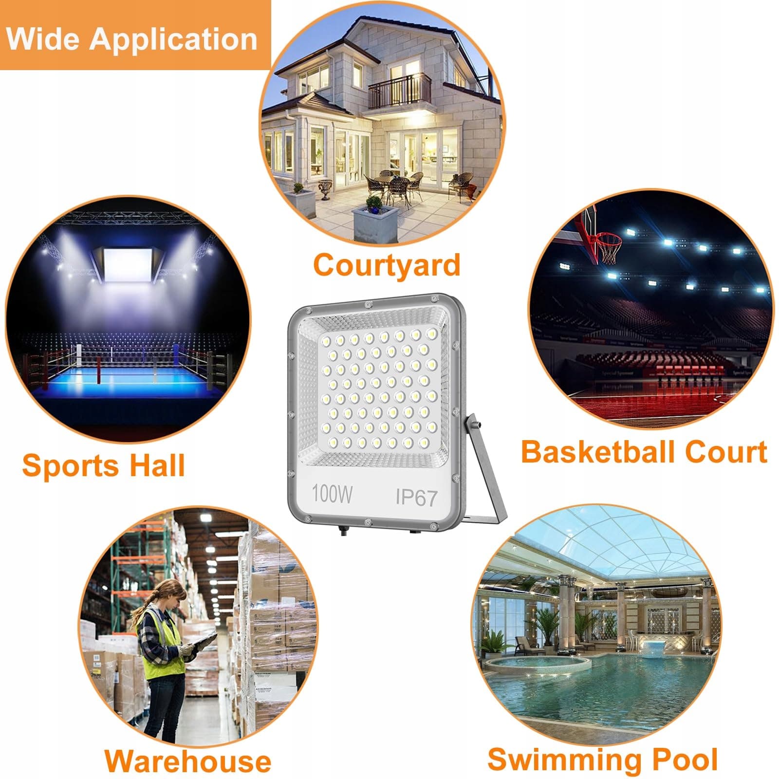 JINABLOSSY Reflektor LED Zewnętrzny 100W 6500K Super Jasny IP66 Wodoodporny | Premium Supply
