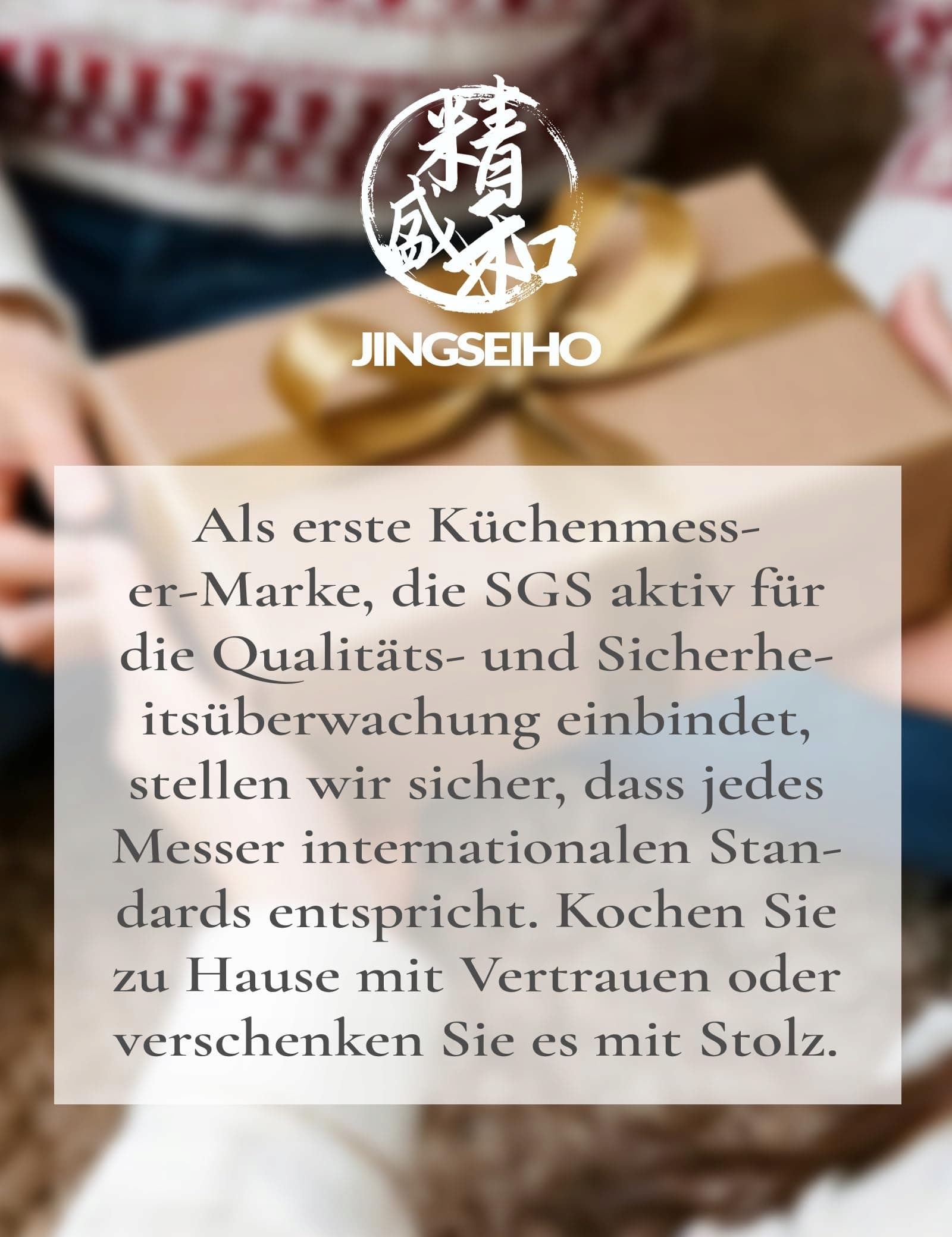 Jakość wspierana przez SGS, uspokajająca na co dzień, elegancka na prezent – Jingseiho to pierwsza marka, która proaktywnie wykorzystuje testy SGS do monitorowania jakości produktów, zobowiązanie do ostrości i bezpieczeństwa, któremu możesz zaufać; czy to do twojej własnej kuchni, czy jako prezent, jest to bezproblemowe i wyrafinowane.