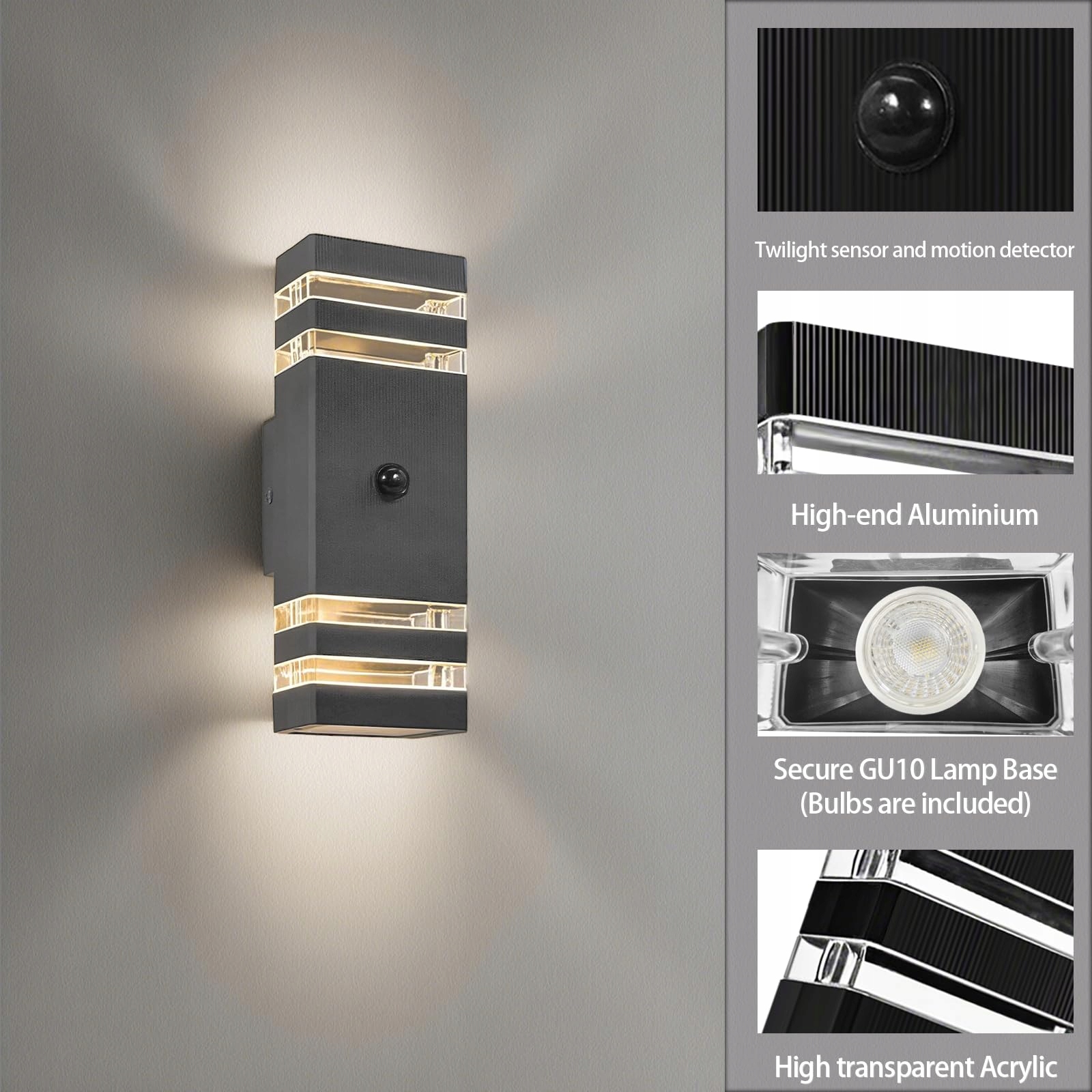 【Łatwa instalacja】 Otrzymujesz wysokiej jakości zewnętrzną lampę ścienną LED wraz z dwoma żarówkami 5W GU10. Dzięki naszej instrukcji montażu krok po kroku lampa z czujnikiem może być łatwo zamocowana na ścianie.