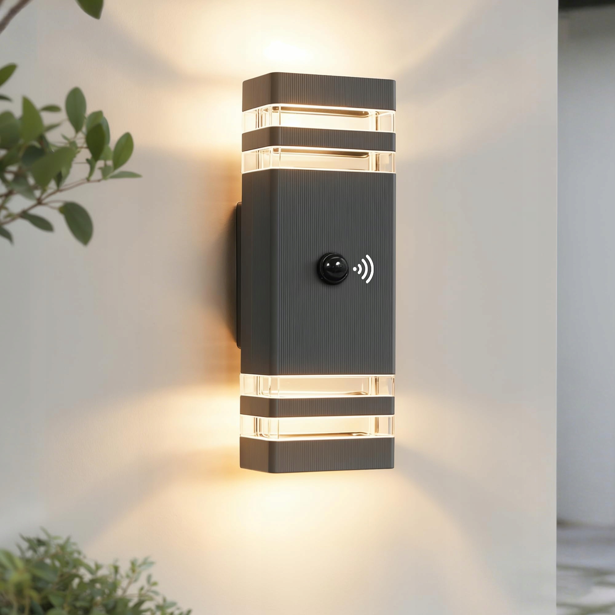【Elegancki efekt świetlny】 Nowoczesna lampa ścienna JNR z czujnikiem ruchu wykorzystuje podwójny koncept światła (górne + dolne źródło światła) dla równomiernego rozprowadzenia światła. Ciepłe, miękkie światło tworzy elegancką i urzekającą wieczorną atmosferę wokół Twojego domu.