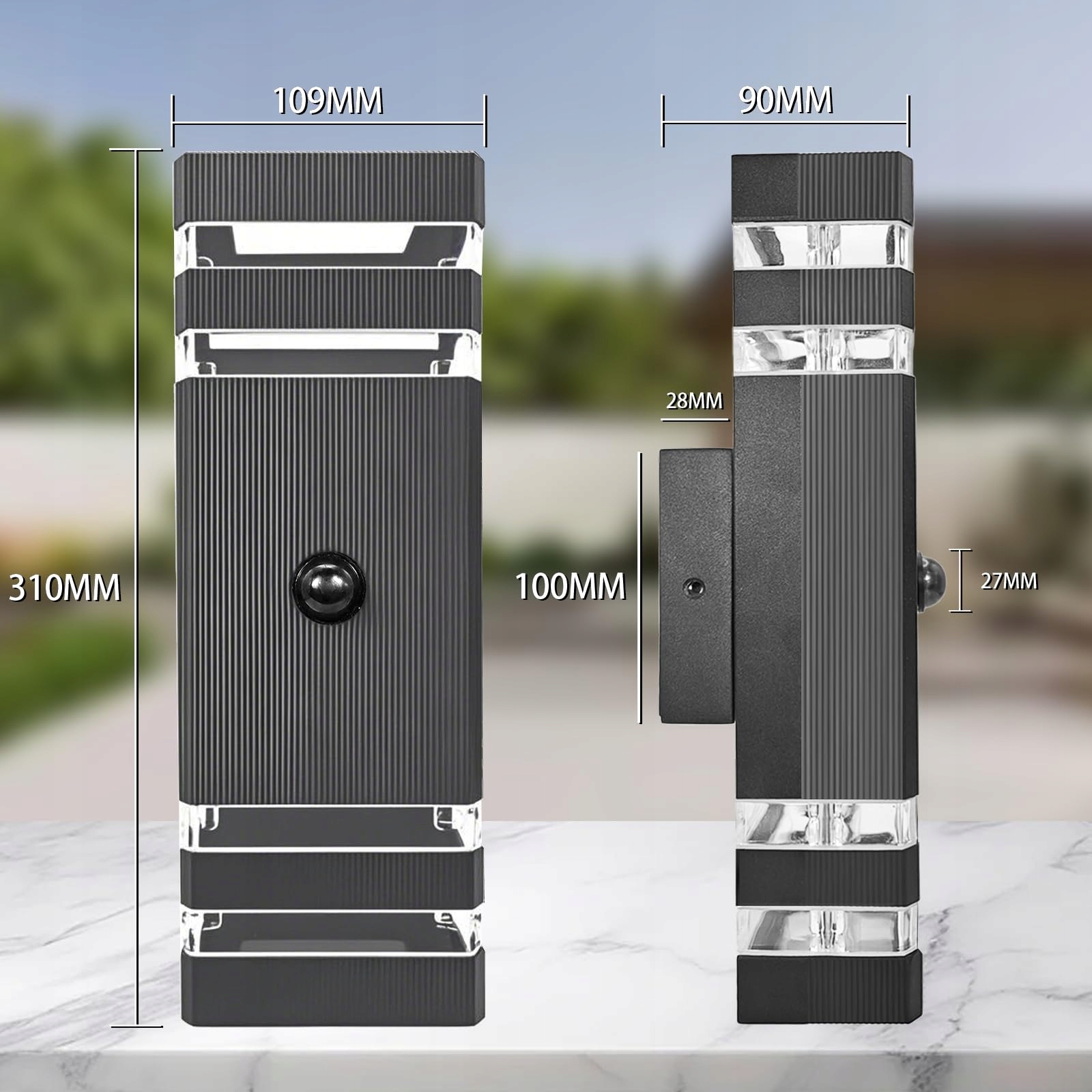 【Wysokiej jakości materiały】 Ta wysokiej jakości lampa ścienna JNR z czujnikiem ruchu wykonana jest z wytrzymałej ramy z odlewanego aluminium oraz przezroczystego materiału PC. Nawet w ekstremalnych warunkach pogodowych zapewnia doskonałą odporność na ciepło, uderzenia i korozję chemiczną.
