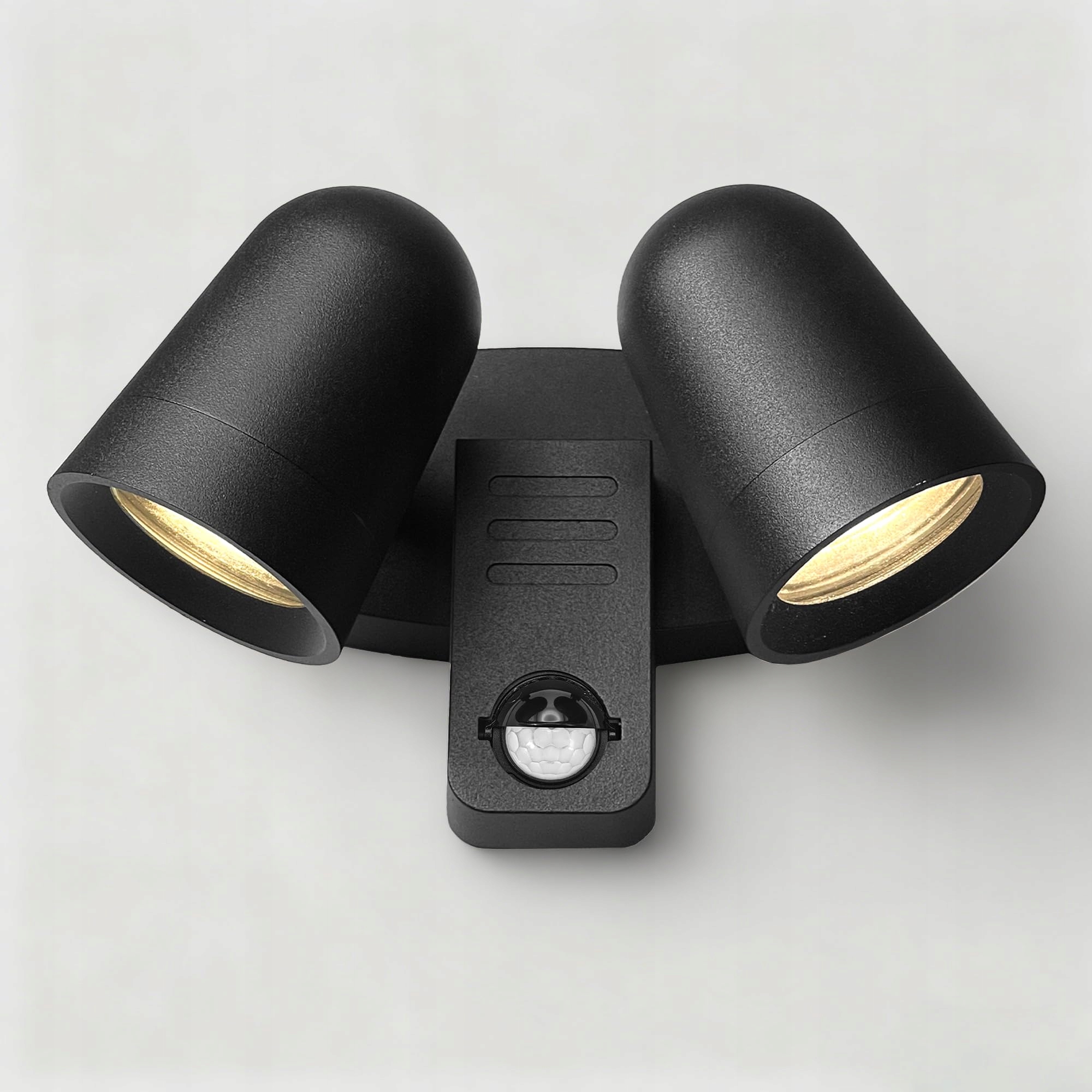 JNR LED Zewnętrzna Lampa Z Czujnikiem Ruchu IP54 2x5W GU10 3000K Czarna | Premium Supply