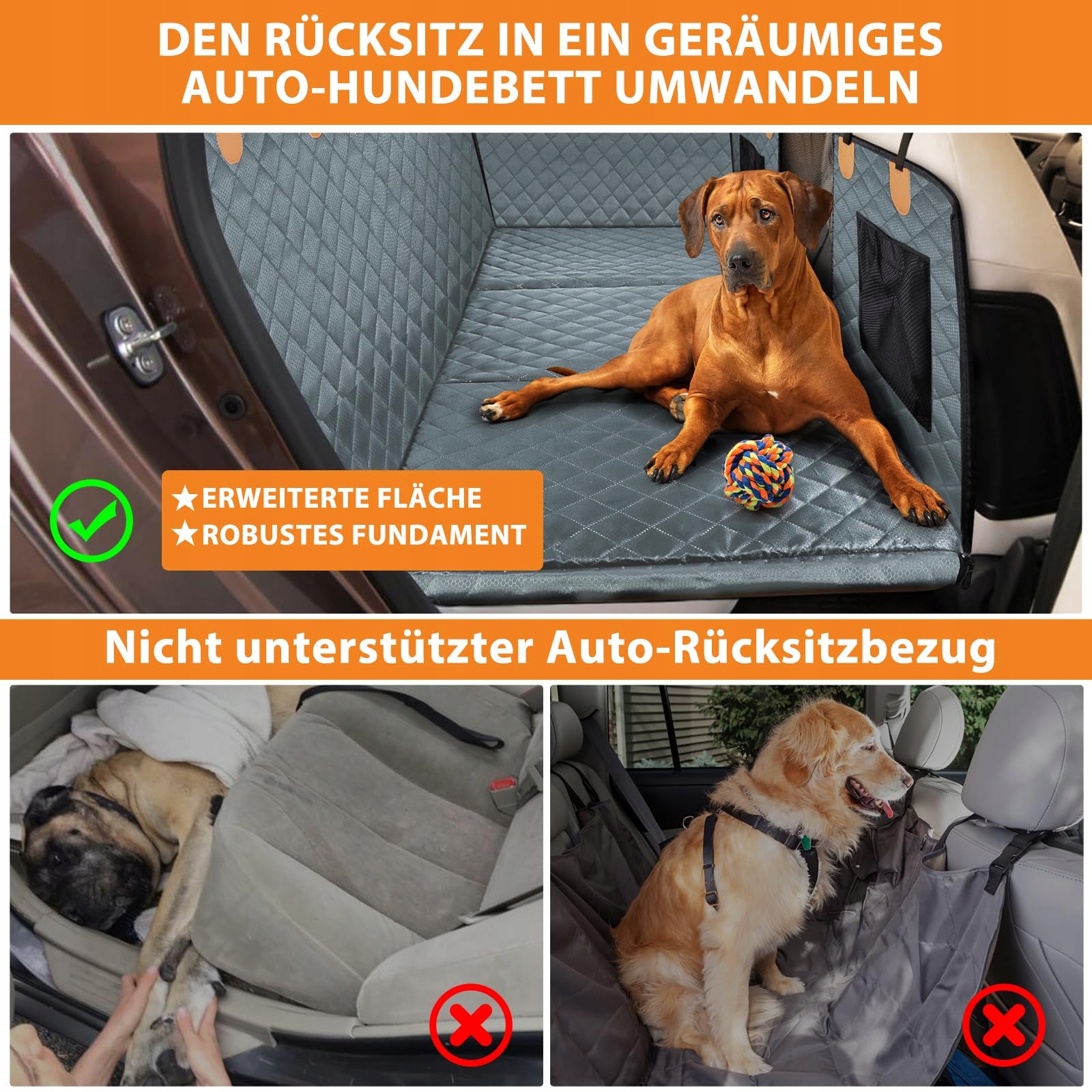 [Szeroka mata dla psa na tylne siedzenie samochodu & Wygodna]Szeroka i długa mata dla psa zamienia całe tylne siedzenie w wygodne łóżko dla Twojego psa i zapobiega wypadnięciu psa z tylnego siedzenia podczas gwałtownego hamowania lub zabawy. Idealna na podróże/wycieczki z Twoim zwierzakiem i do dzielenia się miejscem do spania w samochodzie z Twoim pupilem.