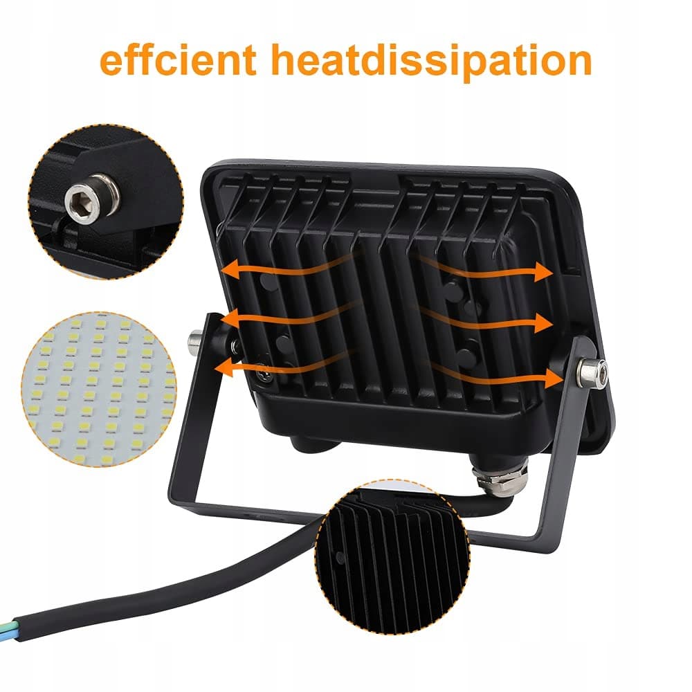 【Efektywne odprowadzanie ciepła】 Reflektor LED można regulować o 180 stopni. Innowacyjna konstrukcja ultracienkiej obudowy lampy i zintegrowanego radiatora umożliwia skuteczne odprowadzanie ciepła i wydłuża żywotność reflektora.