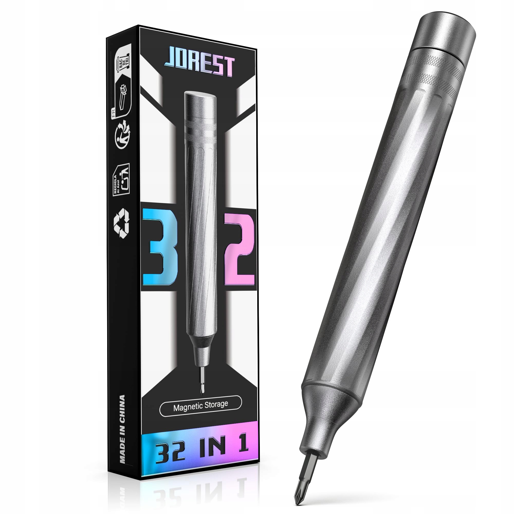 【Zestaw precyzyjnych wkrętaków 32 w 1】 Zawiera 32 precyzyjne bity ze stali stopowej S2 (w tym Philips PH000 (+1,2) PH000 (+1,5) PH00 (+2,0) PH0 (+3,0); wkrętak płaski -0,8 -1,2 -1,5 -2,5 -3,0; Torx T1 T2 T3 T4 T5; Torx bezpieczeństwa TR6 TR7 TR8 TR9 TR10 TR15; Triwing Y000 (Y0.6) Y00 (Y1.5) Y0 (Y2.5) Y1 (Y3.0); Pentalobe P2 (0,8) P5 (1,2) P6 (1,5); sześciokąt H1,5 H2,0 H2,5 H3,0; MID 2,5.), trwały i odporny na zużycie, niełatwy do odkształcenia, łatwy w obsłudze dla telefonów komórkowych, okularów, zabawek, laptopów i innych małych produktów elektronicznych, które wymagają precyzyjnego demontażu.
