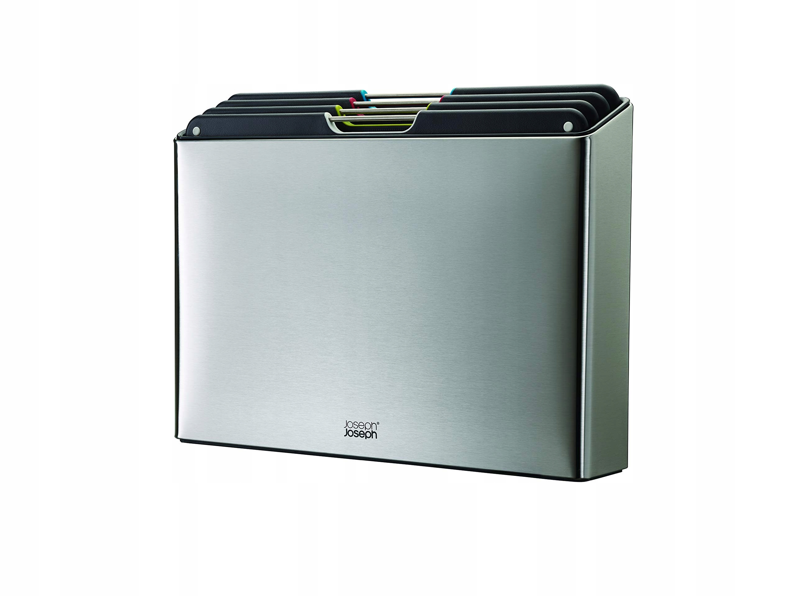 Joseph Joseph Folio 4-częściowy zestaw desek do krojenia z kodowaniem kolorami, Slimline etui do zorganizowanego przechowywania w kuchni, duży, stal nierdzewna