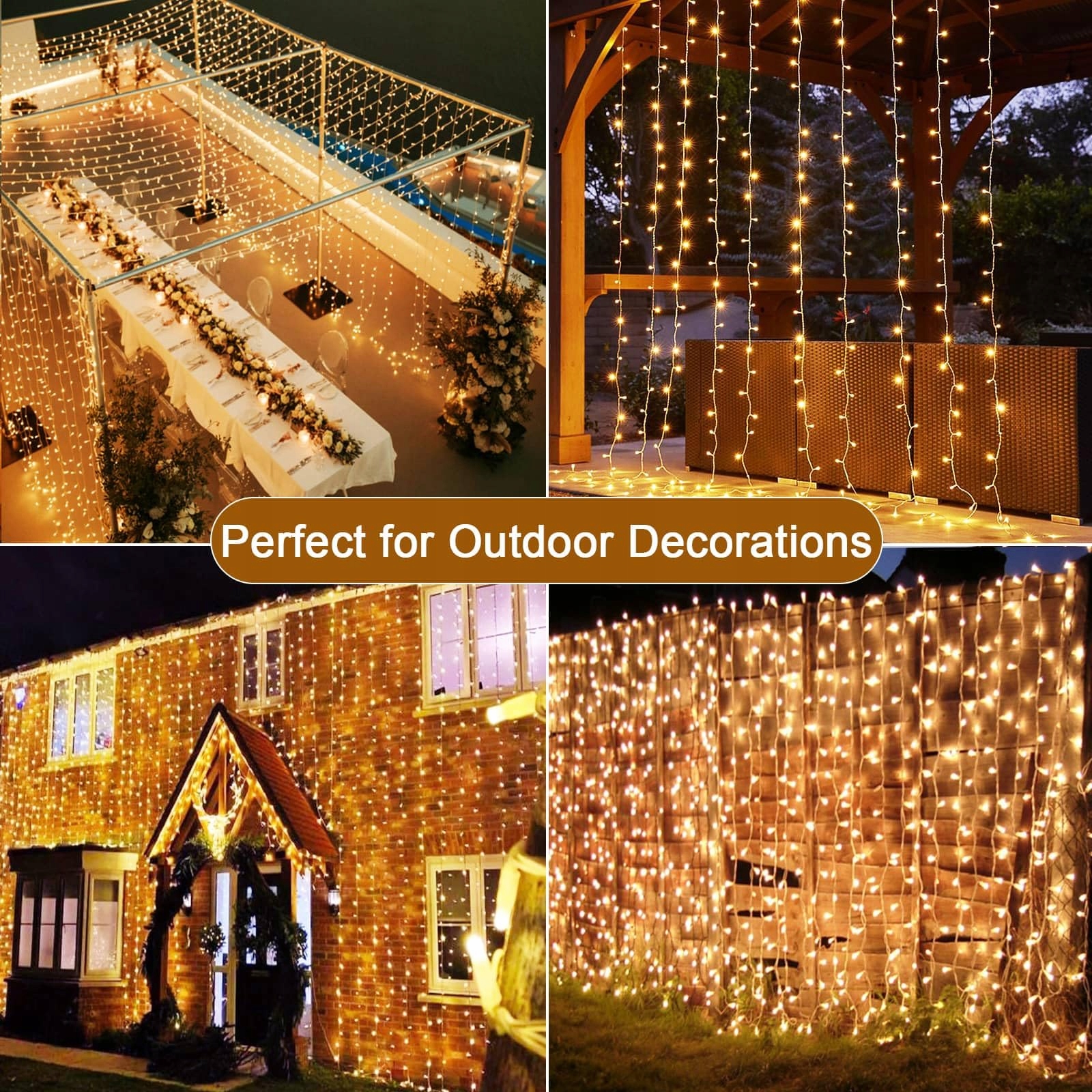 Wodoodporność IP65 i szerokie zastosowanie - Nasza świąteczna kurtyna świetlna jest wodoodporna IP65, odporna na silny deszcz i śnieg, idealna do dekoracji ścian wewnętrznych i zewnętrznych. Może być używana nie tylko jako dekoracja świąteczna, tło weselne, ale także bardzo odpowiednia do codziennego użytku, na przykład na zasłony, ściany, okna.