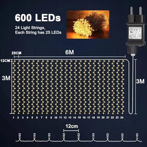 Joycome Lichtervorhang 6m x 3m 600 LED Lichterketten Vorhang, 8 Modi Weihnachtsbeleuchtung Strombetrieben Wasserdicht Fenster für Wand Zimmer Balkon Außen Innen Weihnachtsdeko (Ciepły biały)