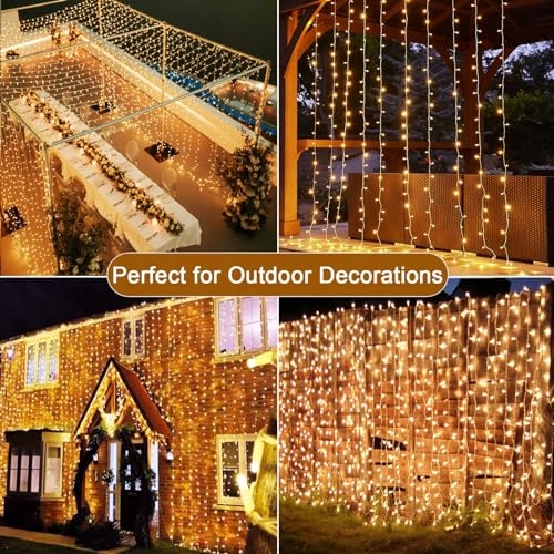 Wodoodporność IP65 i szerokie zastosowanie - Nasza kurtyna świetlna na Boże Narodzenie jest wodoodporna IP65, odporna na silny deszcz i śnieg, idealna do dekoracji ścian wewnątrz i na zewnątrz. Może być używana nie tylko jako dekoracja świąteczna, tło weselne, ale także doskonale nadaje się do codziennego użytku, np. na zasłony, ściany, okna.