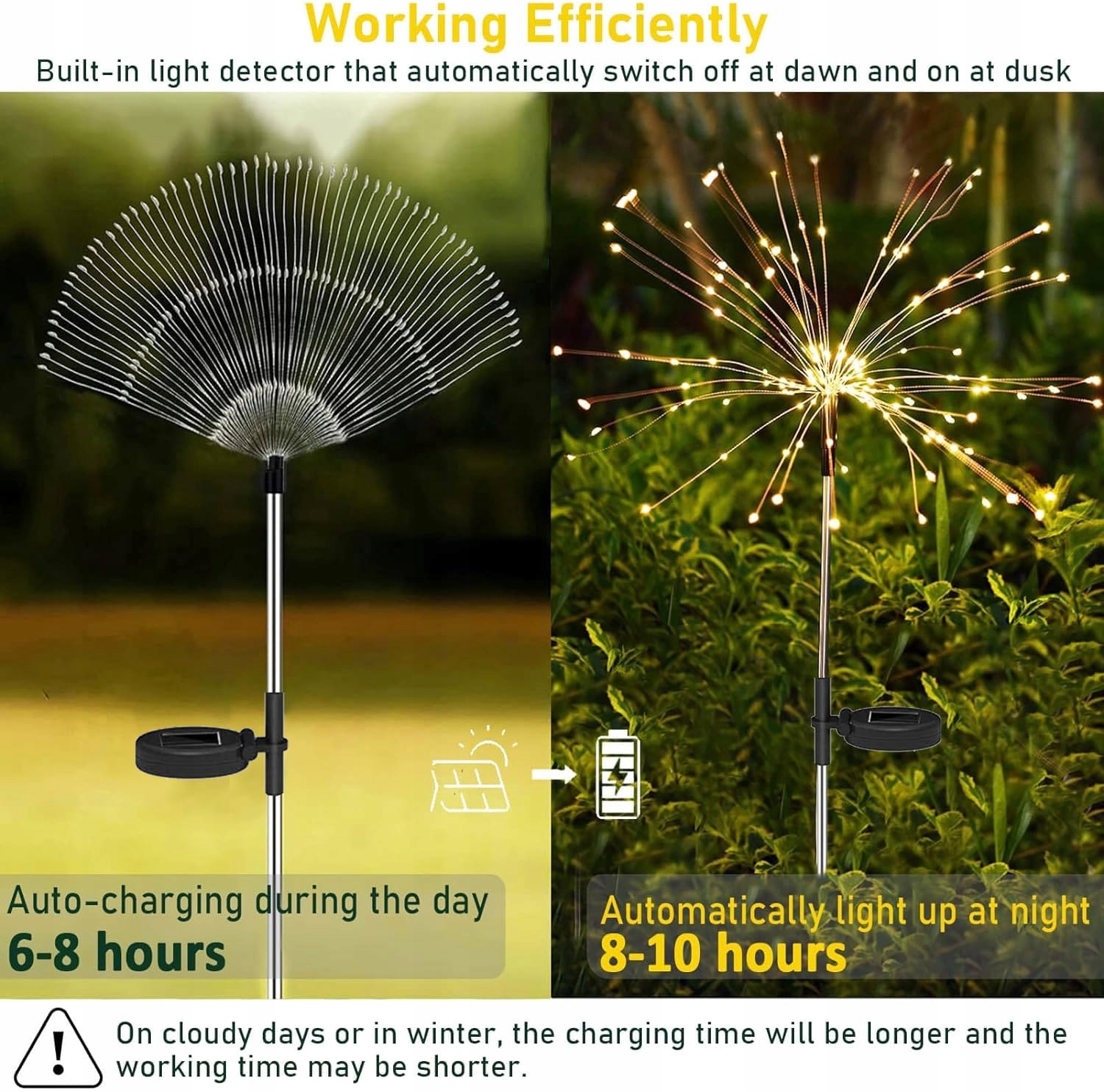 Energooszczędne i wodoodporne IP65 - Lampy solarne typu fajerwerk na zewnątrz nie przegrzewają się i są bezpieczne po dłuższym użytkowaniu. Lampy solarne typu dmuchawiec są wodoodporne IP65, można je używać nawet w śnieżne i deszczowe dni! Idealne na zewnątrz, do skrzynek balkonowych, na taras, trawnik.