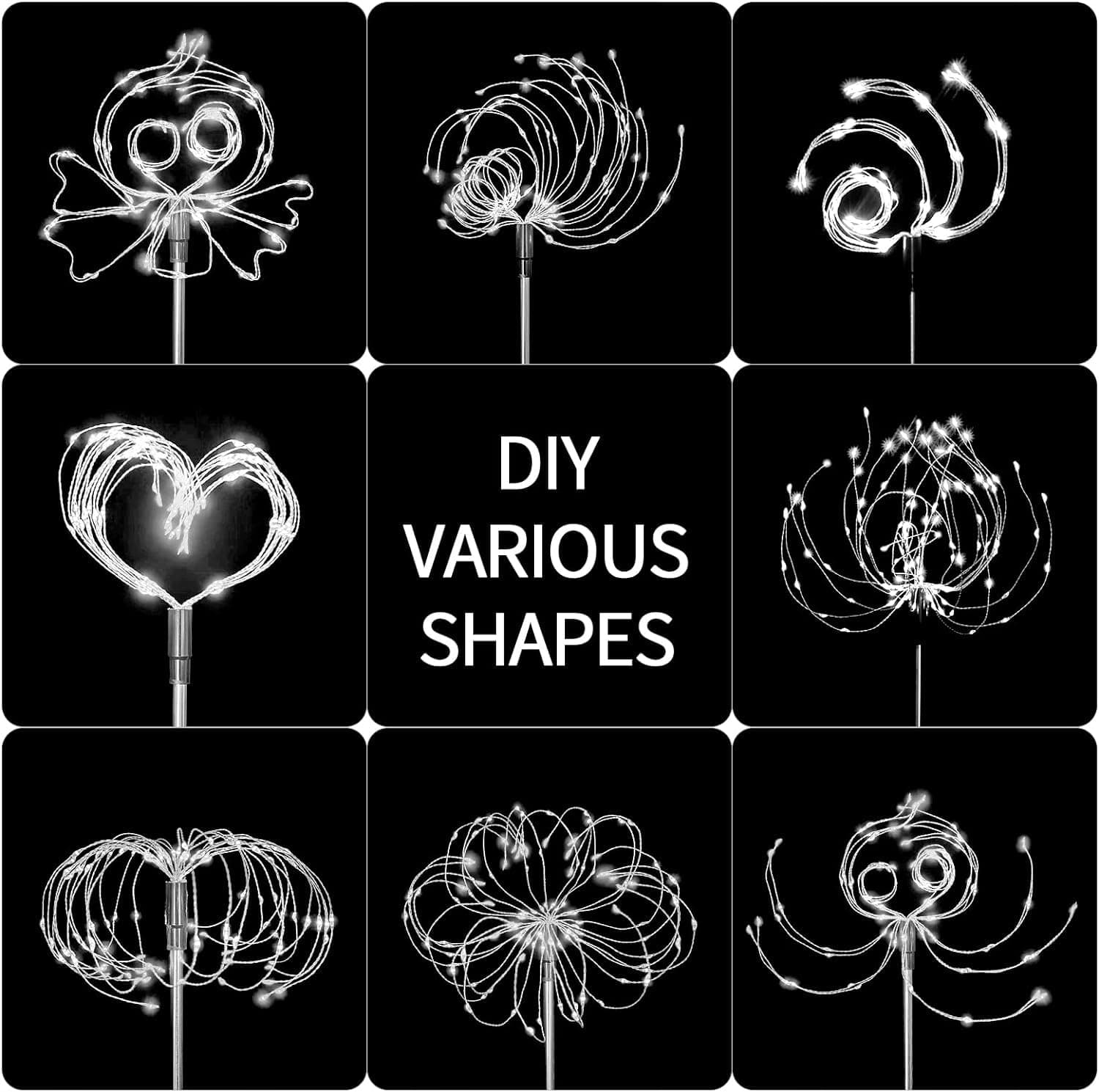 Idealne do dekoracji ogrodu - Lampy solarne wykonane są z elastycznego drutu miedzianego, który można łatwo wyginać w dowolny kształt. Mogą nie tylko tworzyć piękne oświetlenie ścieżki nocą, ale także dodawać uroku Twojemu ogrodowi w ciągu dnia. Idealny wybór na prezent dla przyjaciół i rodziny.