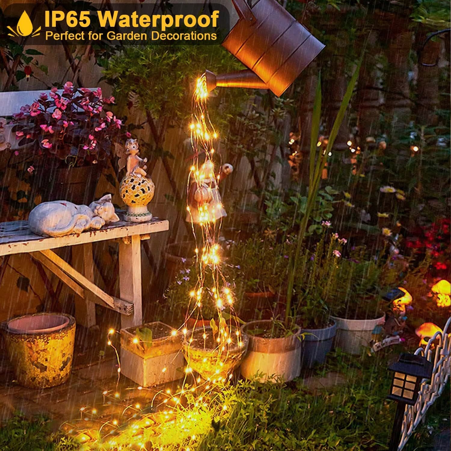 Joycome Solar Lichterkette Aussen 1M 100 LED Lichterschweif, Wasserfall Lichterkette 8 Modi Solar Lichterbündel, Wasserdichte Lichterstrang für Gießkanne Pflanzen Terrasse Balkon Garten Deko