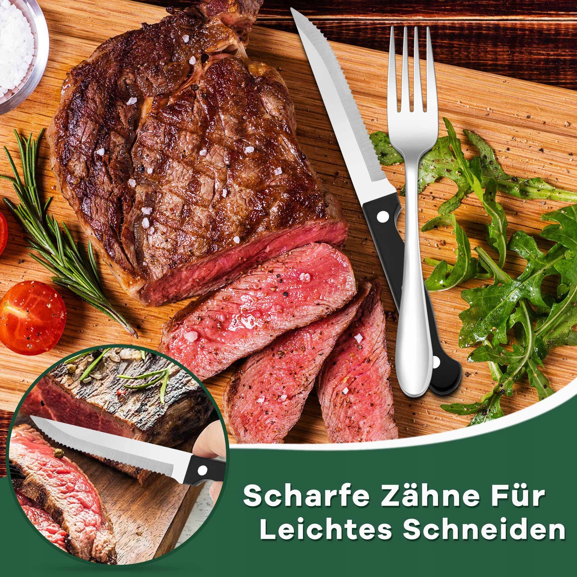 【Zestaw noży do steków】Zawiera 12 wysokiej jakości noży do steków, uchwyt jest potrójnie wzmocniony śrubami, nie musisz się martwić, że uchwyt odłączy się od noża podczas używania, unikalny design sprawia, że nóż do jedzenia jest ostrzejszy, łatwo kroi mięso, prosimy o ostrożność podczas używania, aby się nie skaleczyć