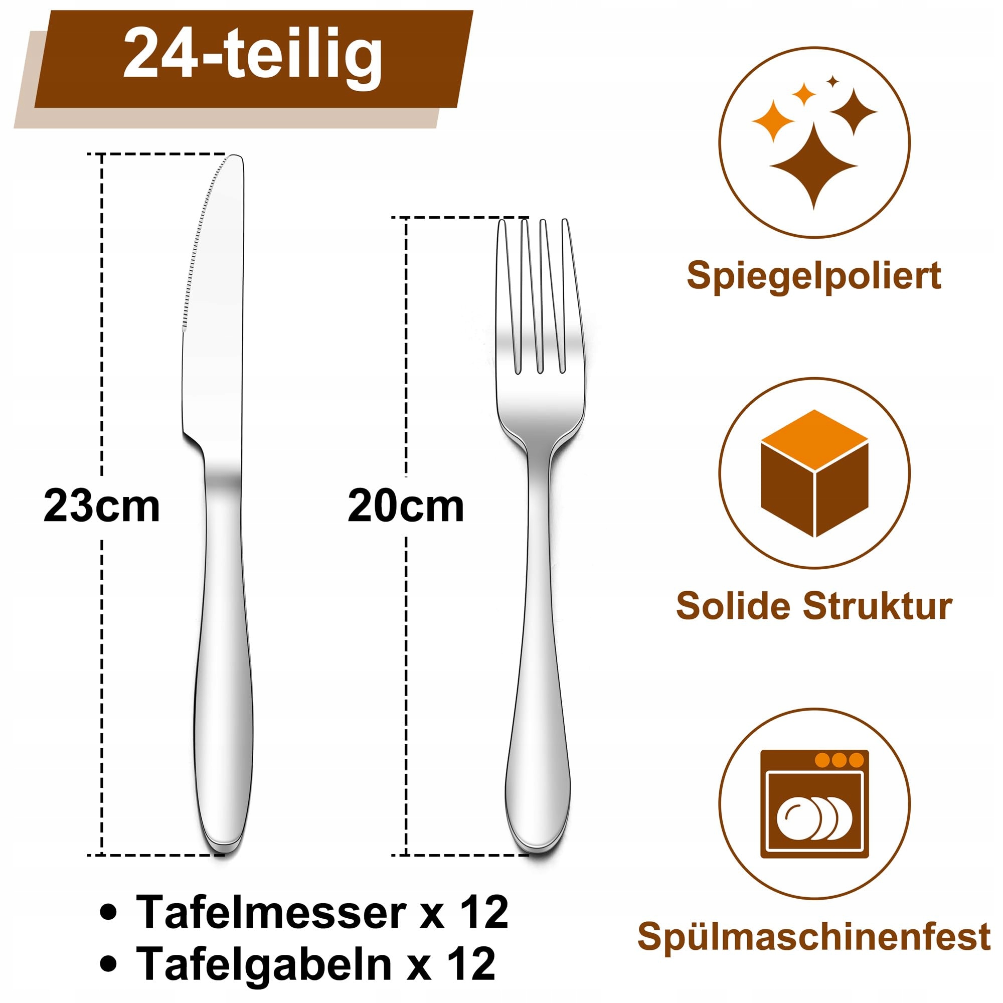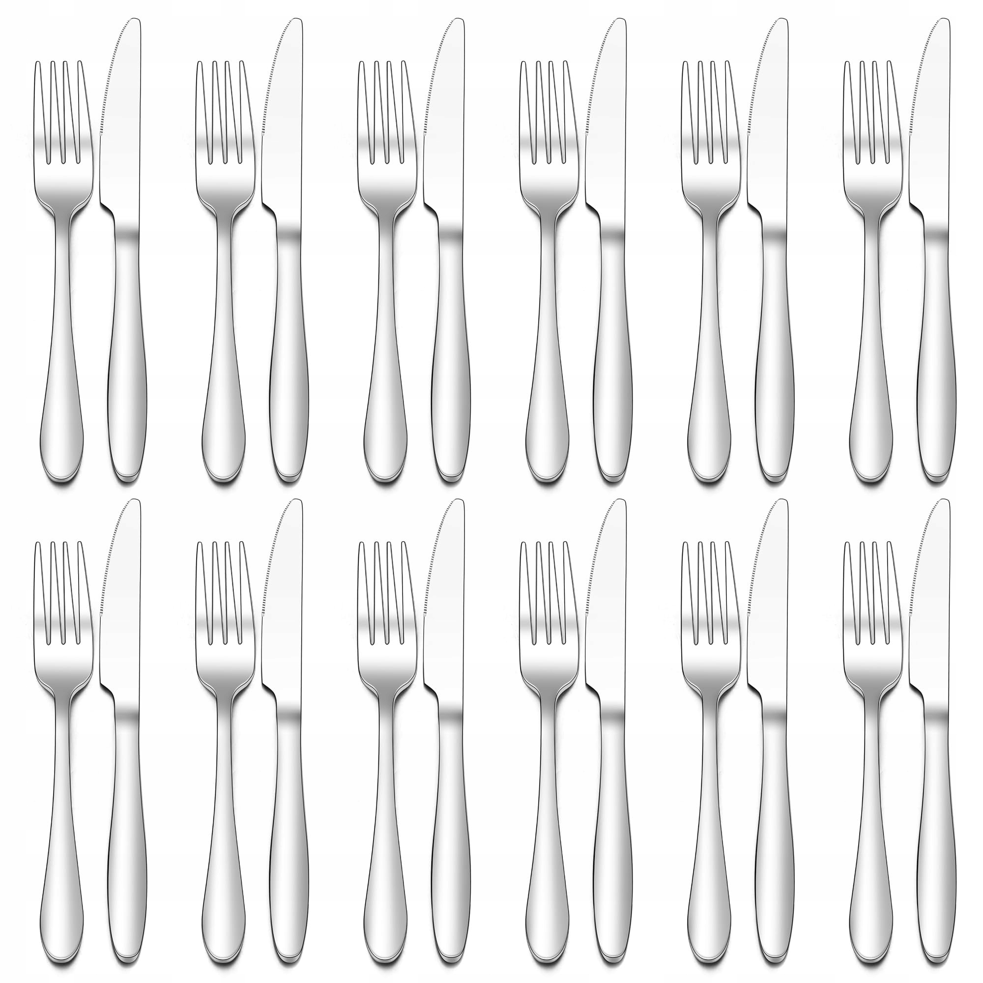 Zestaw noży i widelców Joyfair, 24 sztuki ze stali nierdzewnej do steków dla 12 osób, błyszczący zestaw sztućców do domu/restauracji, 12 noży stołowych (23 cm) + 12 widelców stołowych (20 cm) - nadający się do zmywarki