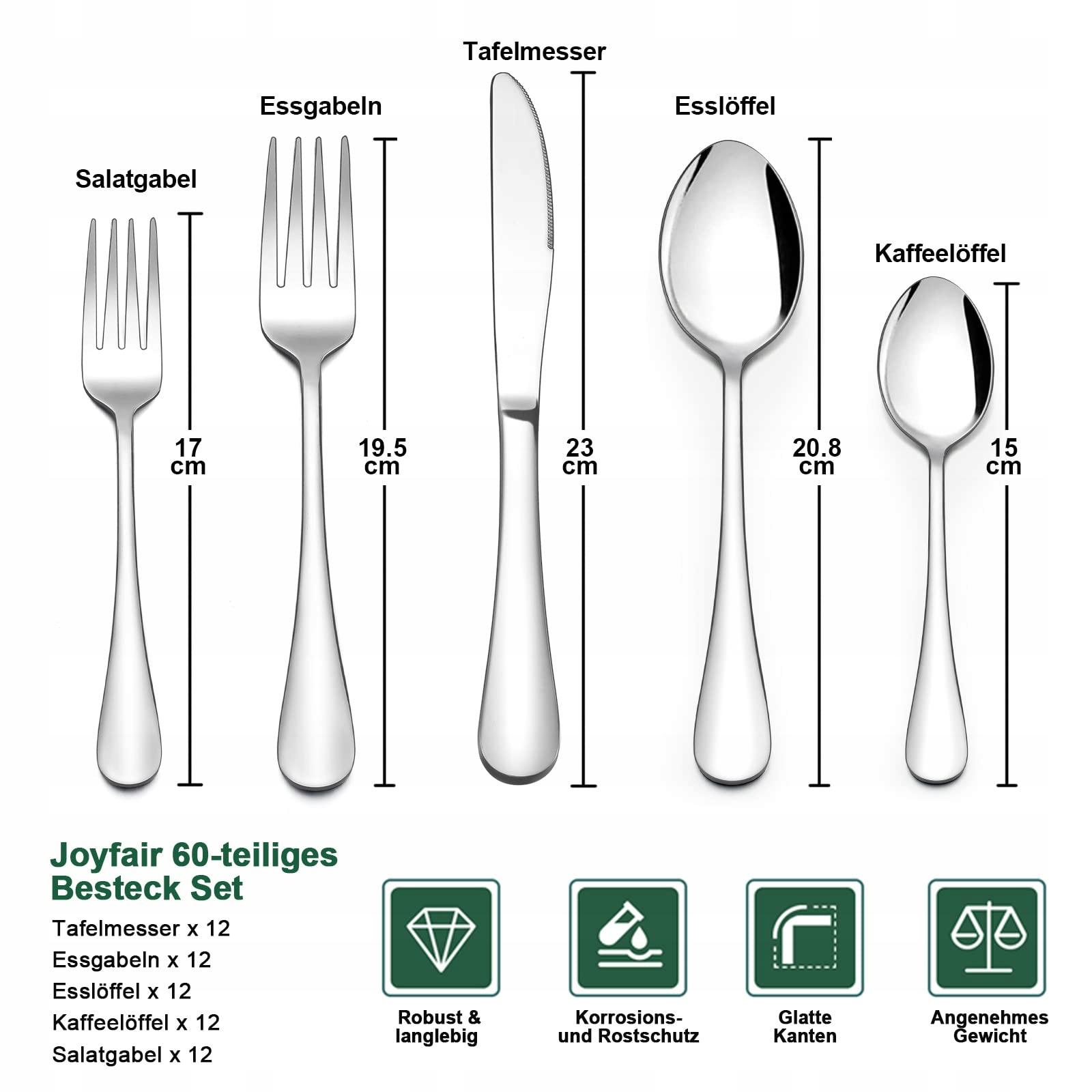 JOYFAIR Zestaw Sztućców 60 Elementów Stal Nierdzewna Na 12 Osób