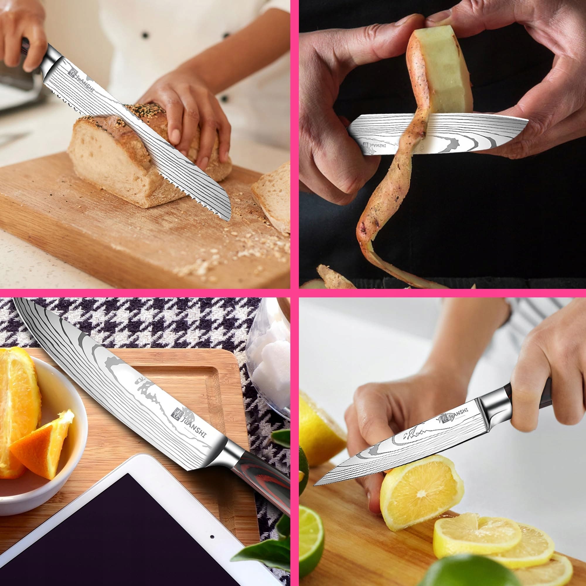 JUANSHI Zestaw 4 Noży Kuchennych Profesjonalne Noże Stal Nierdzewna