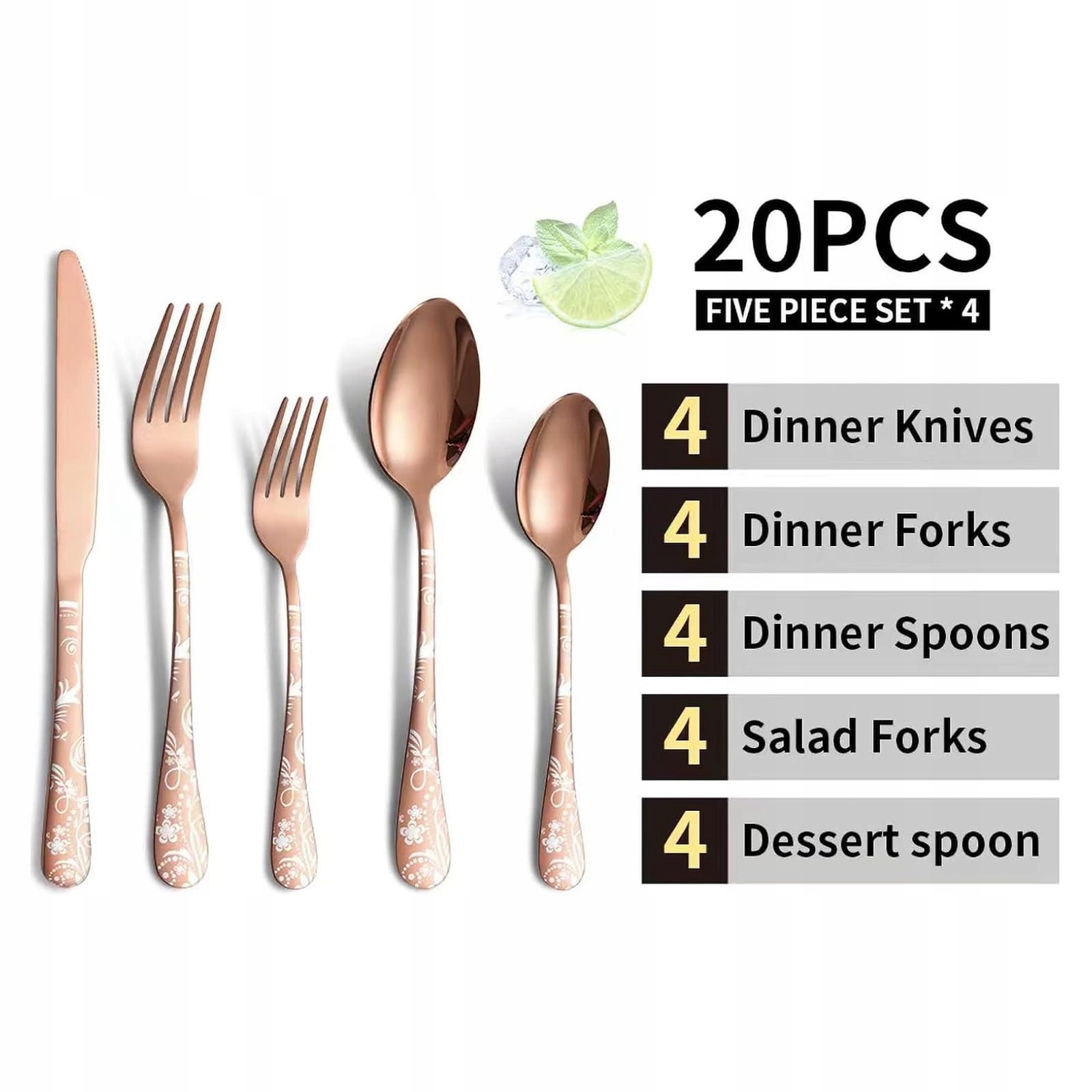 JXKGENIX Zestaw Sztućców 20 Części Stal Nierdzewna Różowe Złoto | Premium Supply