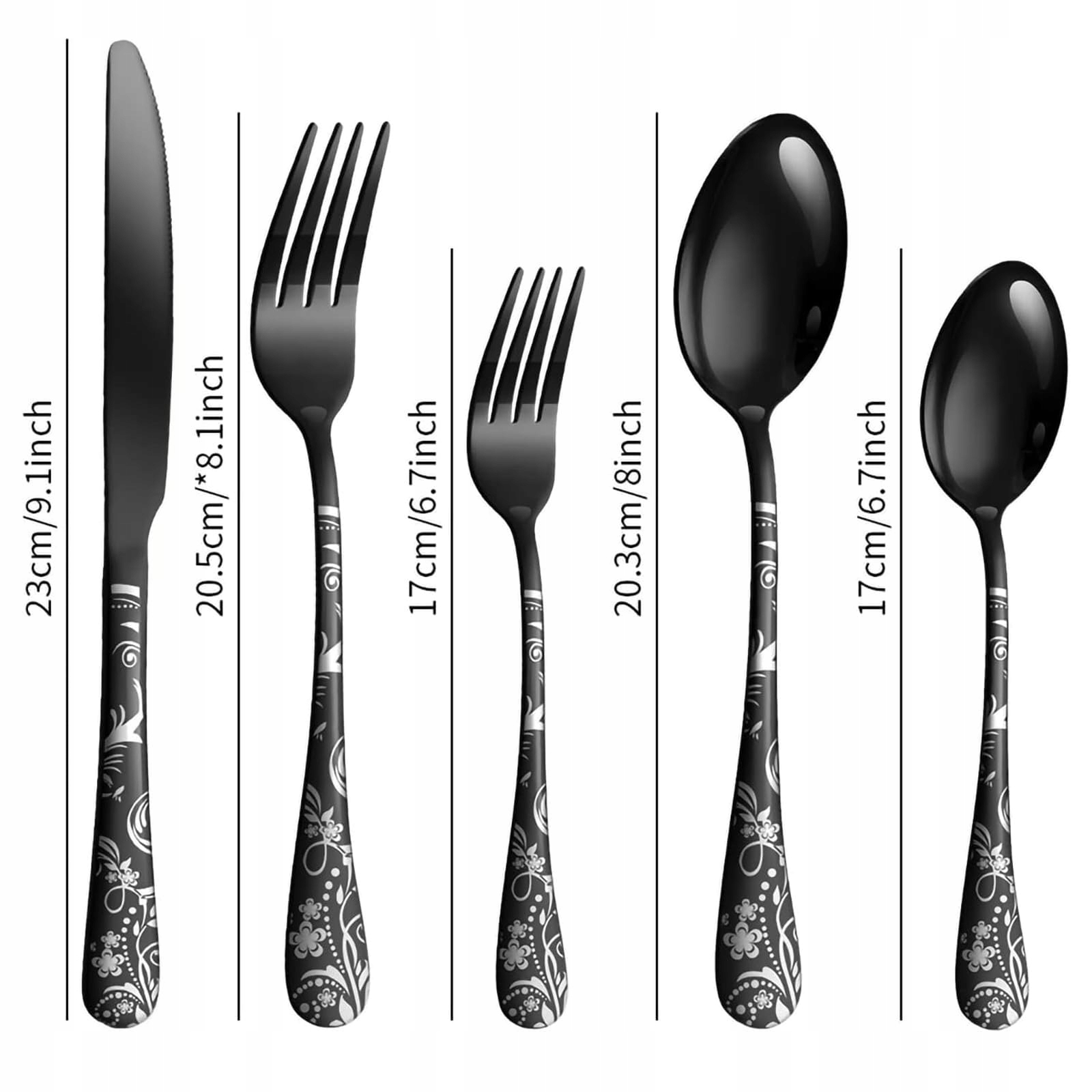 Wygodny uchwyt: Uchwyt sztućców jest wygodny i prosty w użyciu. Projekt uchwytu odpowiada zasadom ergonomii i zapewnia komfortowy chwyt, który się nie ślizga. Dzięki temu jest także łatwy do czyszczenia, ponieważ nie ma rowków ani szczelin. Wzór kwiatowy w stylu laserowo nadrukowany z wykończeniem nadaje Twojemu stołowi odrobinę eleganckiego i luksusowego charakteru podczas posiłków.