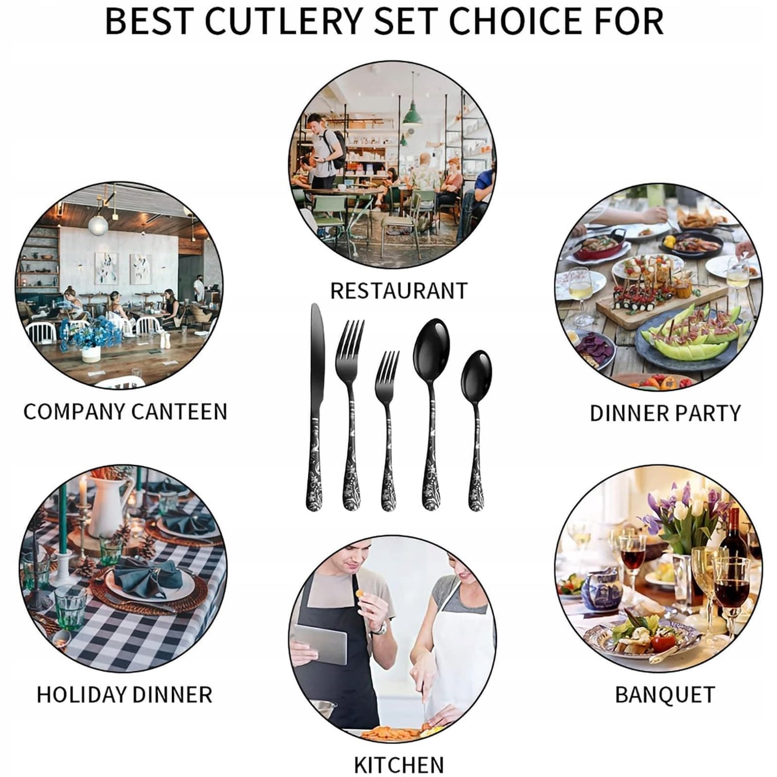 Wszechstronne zastosowanie: Ten zestaw sztućców ze stali nierdzewnej nadaje się na różne okazje, w tym na codzienne posiłki, spotkania rodzinne i formalne wydarzenia. Nadaje się do każdego rodzaju potraw, w tym zup, sałatek, dań głównych i deserów.
