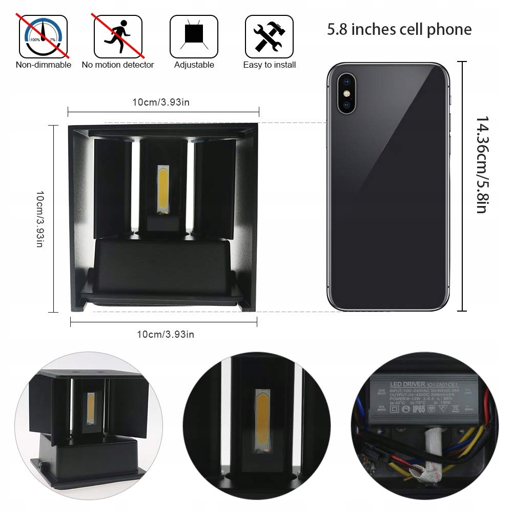 4.【Wymiary produktu】10 x 10 x 10 cm (każdy kinkiet); Napięcie: 85V-265V; Temperatura barwowa: Ciepła biała 3000K; Kolor obudowy: Jasnoszary