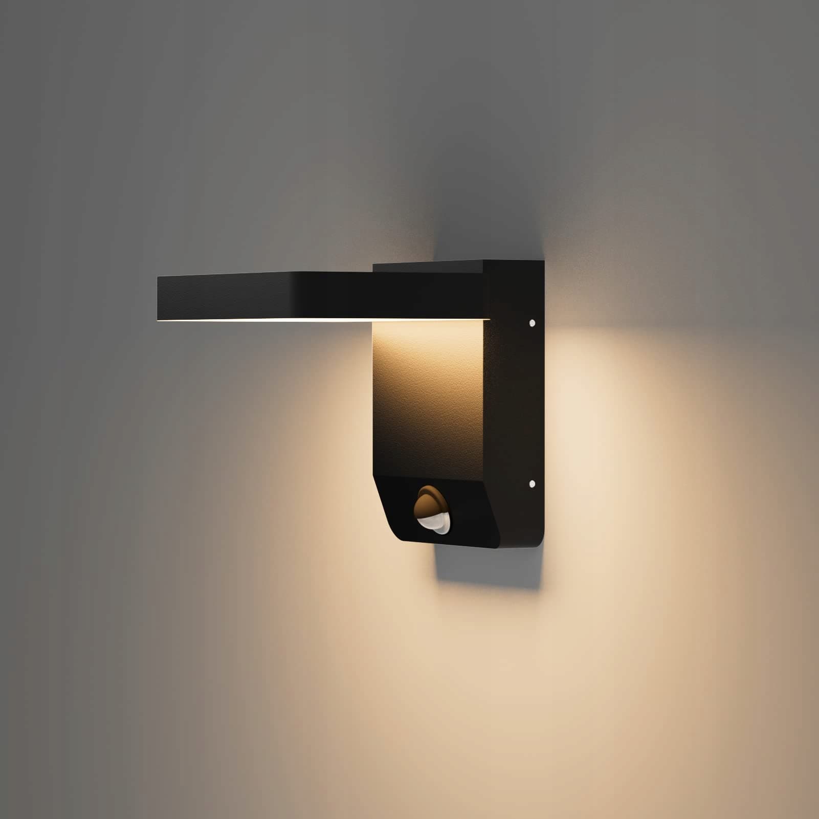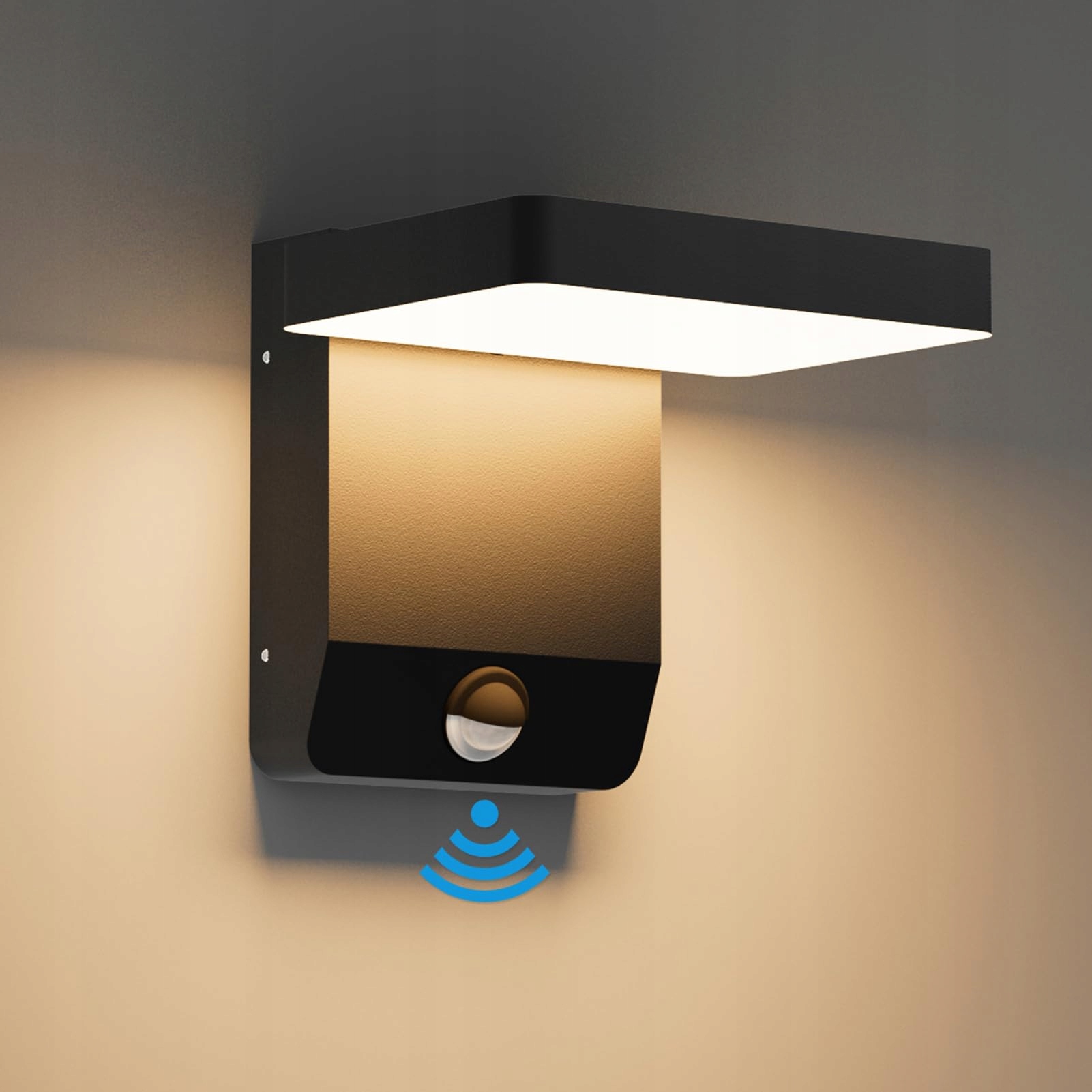 K-Bright 20W 1540LM LED Lampa zewnętrzna z czujnikiem ruchu, czujnik zewnętrzny naścienny, LED lampa naścienna na balkon, ogród 3000K IP65 wodoodporna czarna (prostokąt)