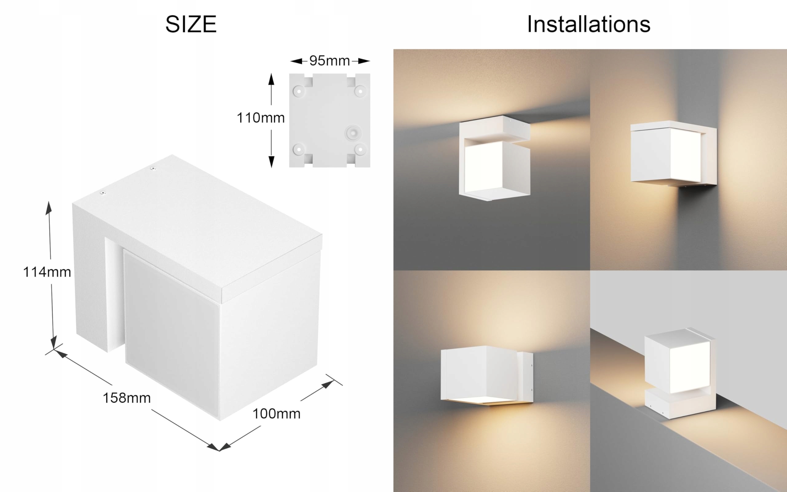 Montaż na ścianie/suficie. K-Bright led lampa ścienna może być montowana jako lampa ścienna na ścianie lub jako reflektor sufitowy na suficie. Różnorodność kątów montażu i metod instalacji daje więcej możliwości ustawienia kąta oświetlenia.