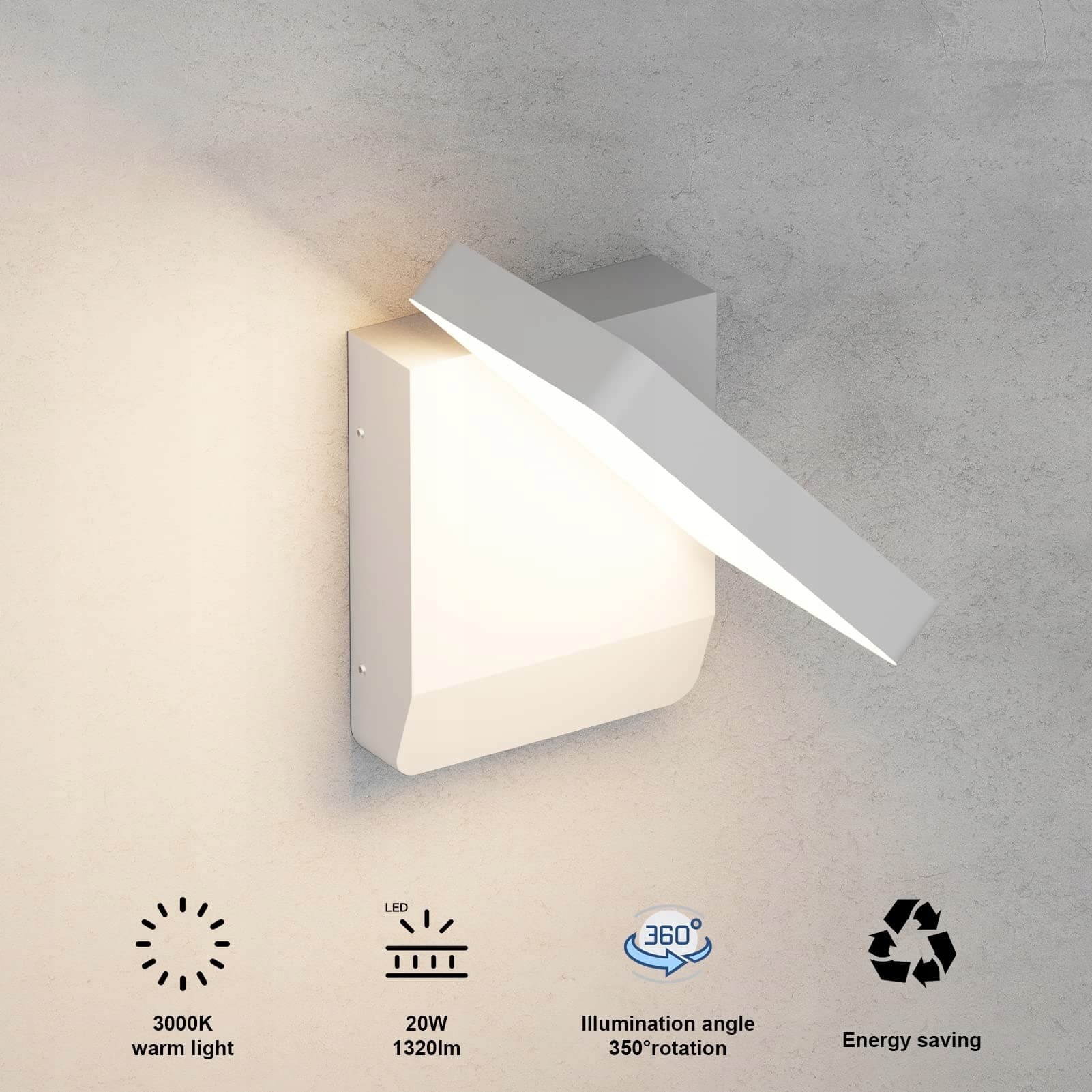 3. Mała i wysoka jasność: Rozmiar tego kinkietu zewnętrznego to tylko 16 cm * 20,6 cm * 17 cm (G * S * W), ale używa wysokiej jasności diody LED, moc wynosi 20 W, jasność 1320 LM, rozświetlając Twój świat.