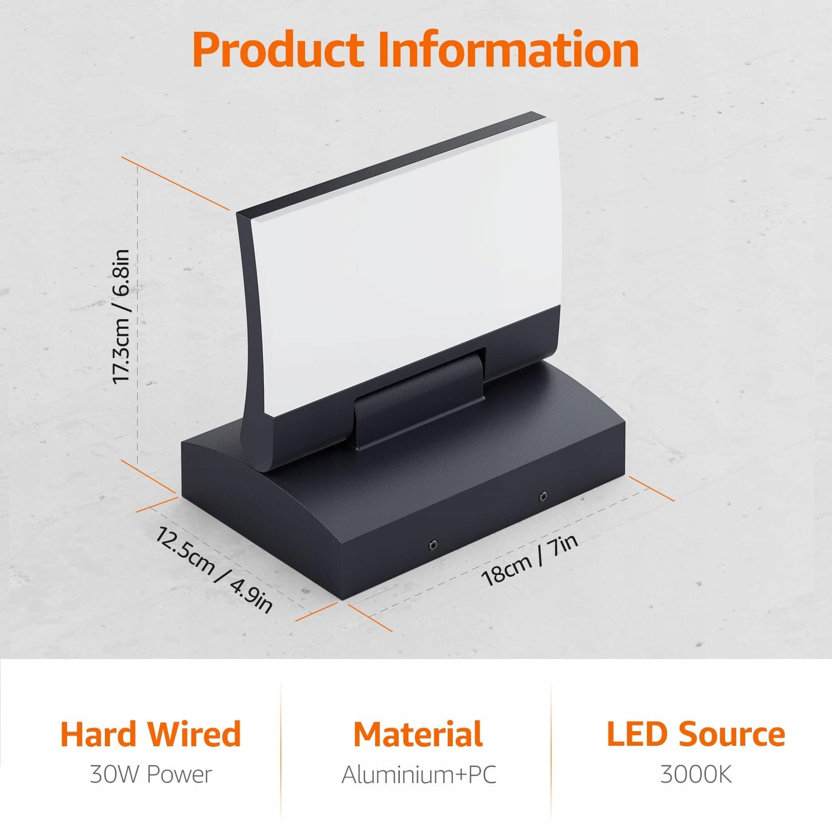 ✅【30W lampa zewnętrzna z wysokiej jakości aluminiową obudową】- Lampa ścienna zewnętrzna o wysokiej gęstości klosz PC redukuje olśnienie, optymalizuje rozkład światła. Aluminiowa obudowa i odporny na uderzenia, ciepło i UV klosz do tarasów, wejść lub obiektów komercyjnych. Energooszczędna, trwała, bez olśnienia!