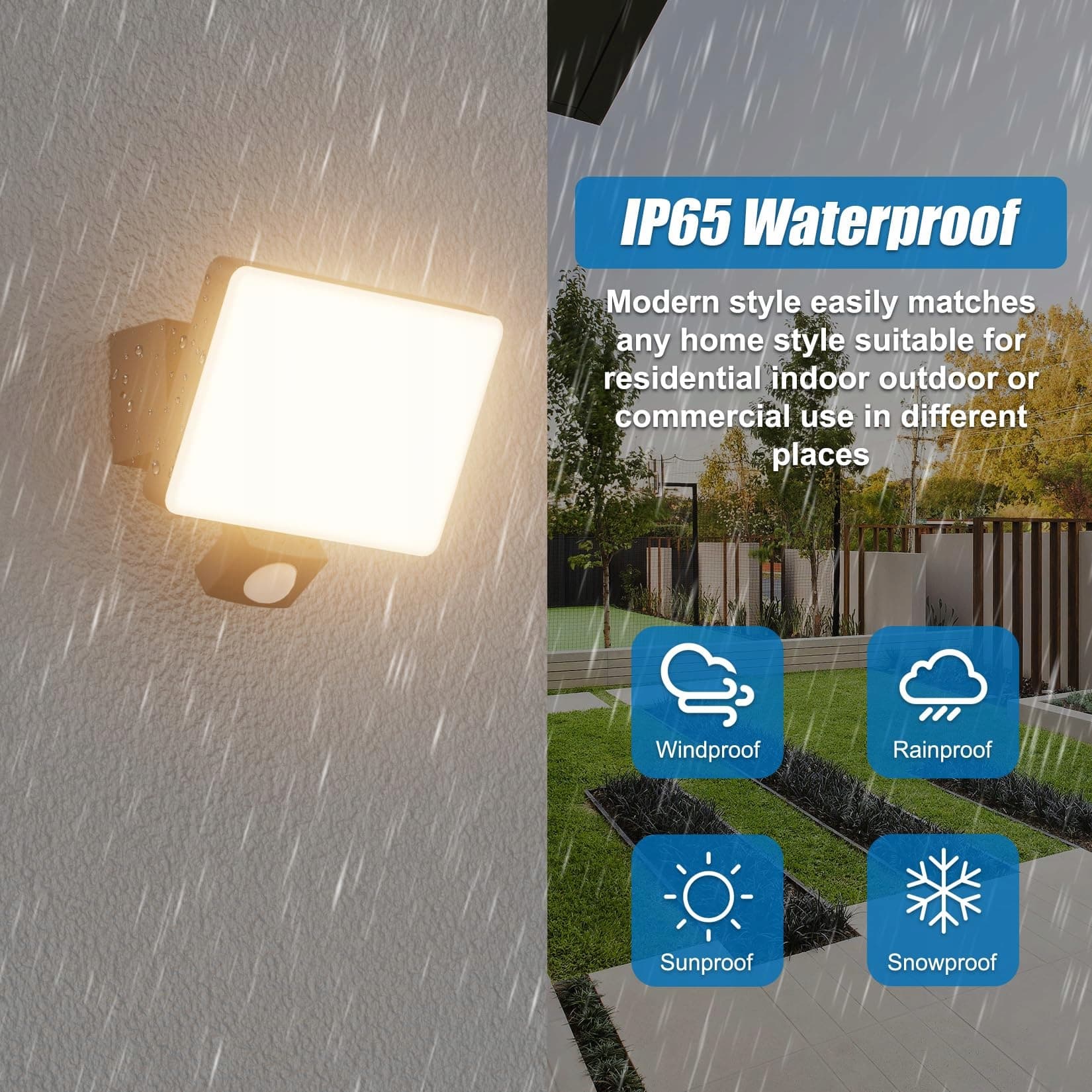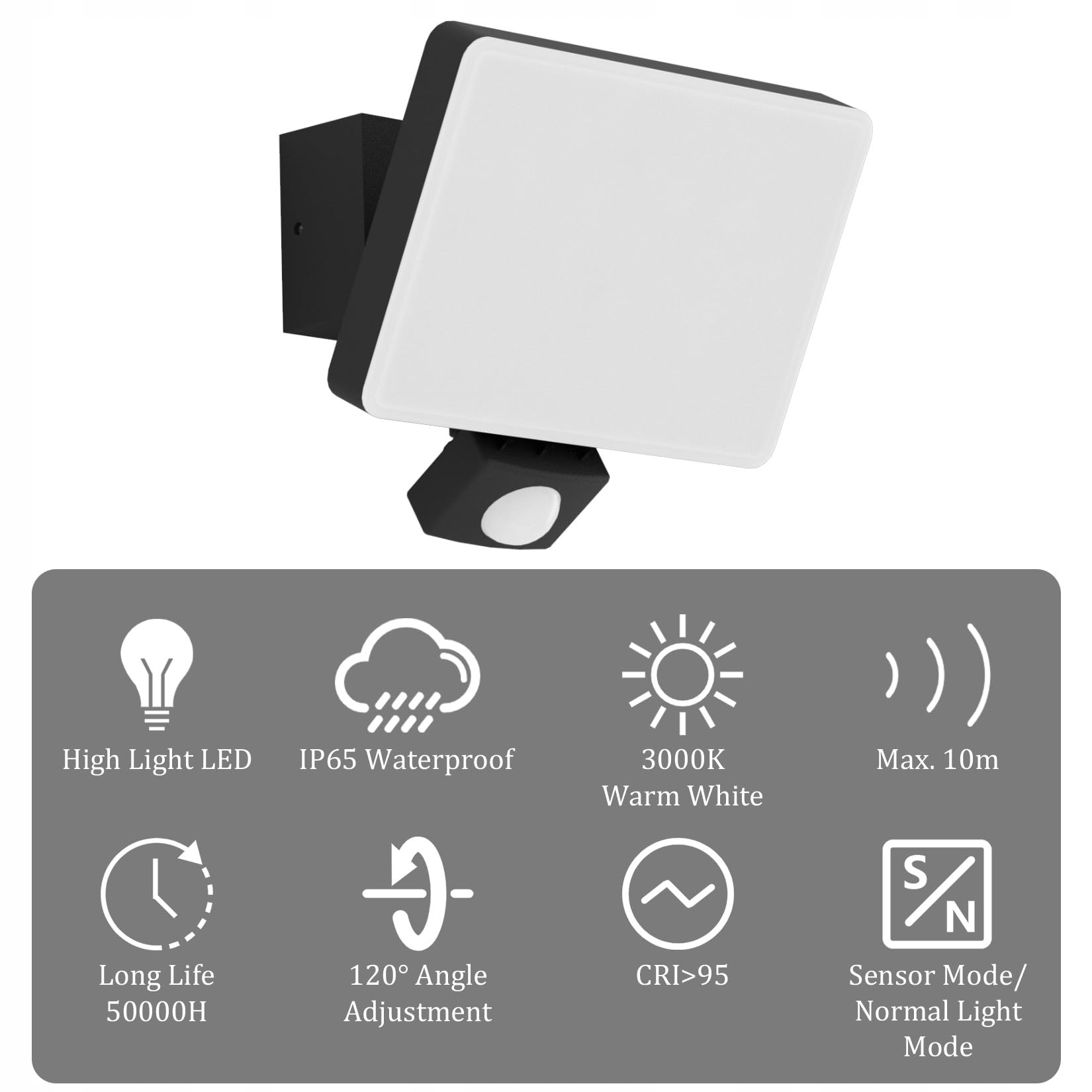 【Szeroki zakres zastosowań】Reflektor LED z czujnikiem ruchu to 3000K światło przyjemnie ciepłobiałe. Odpowiedni na zewnątrz: taras, domek ogrodowy, garaż, wiata, podwórko, podjazd, wejście, ściana, ściana domu, zadaszenie. Podłączenie bezpośrednio do 230V