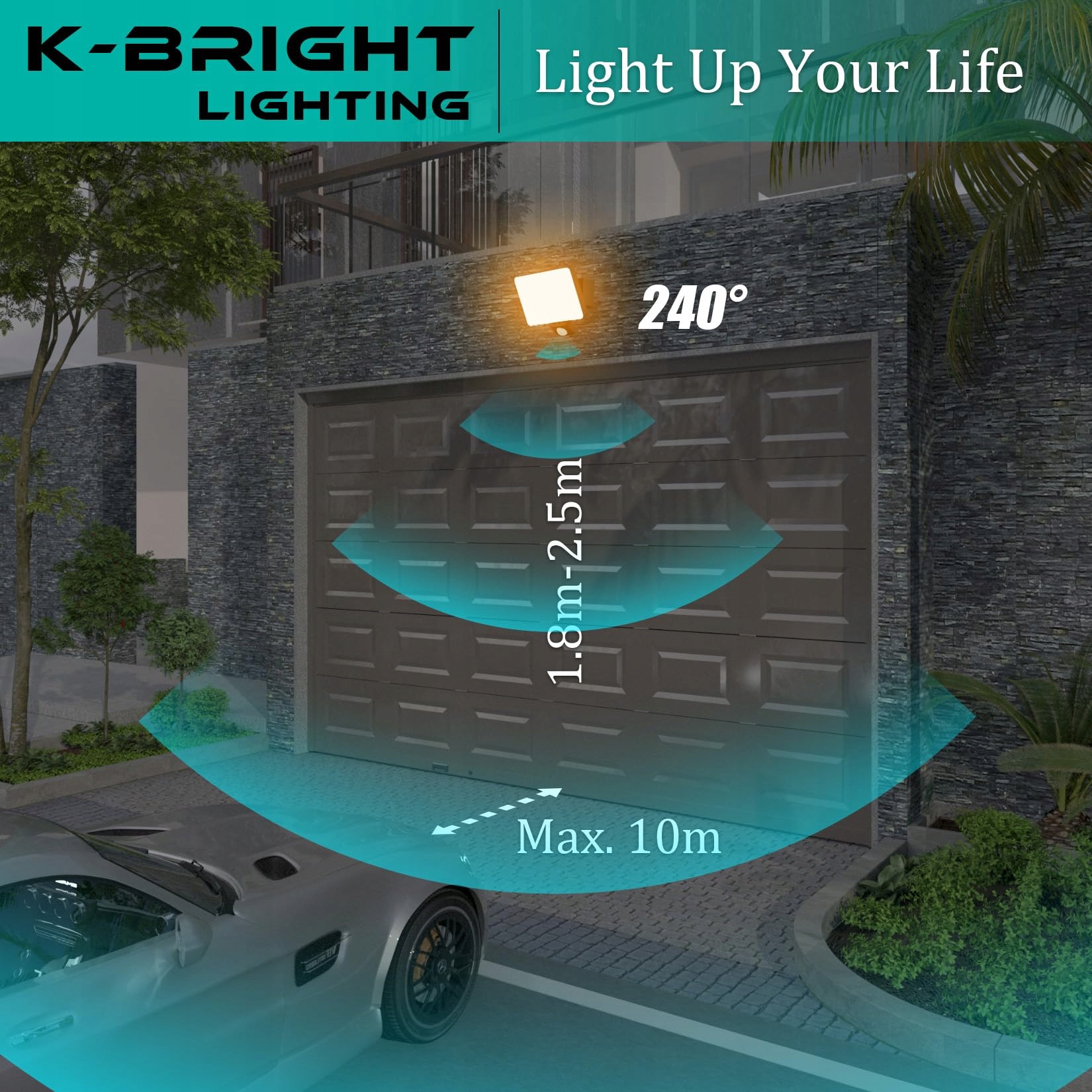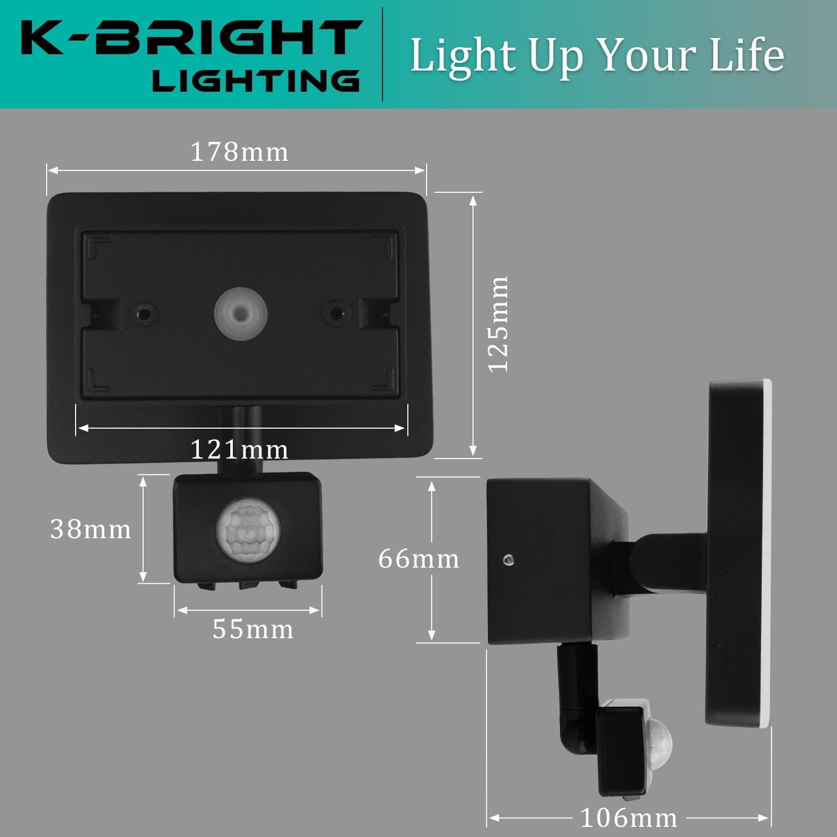 K-BRIGHT Lampa Zewnętrzna z Czujnikiem Ruchu 24W IP65 na Balkon Ogród | Premium Supply