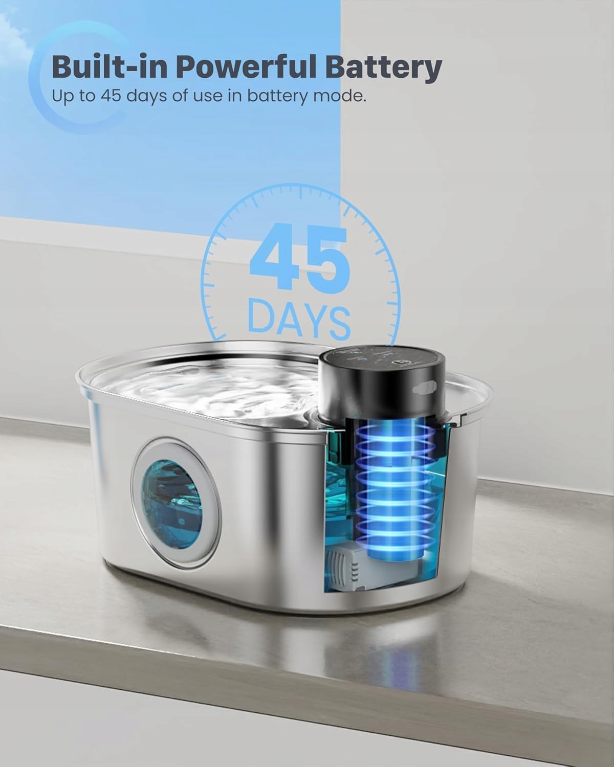 [Pojemność 3,2L do picia]Dozownik wody dla kotów o pojemności 3,2L, nawet jeśli jesteś zajęty przez ponad tydzień, nie musisz martwić się, że Twojemu zwierzęciu zabraknie wody. Ta fontanna dla zwierząt może stale dostarczać świeżą wodę, oszczędzając Twój czas i pomagając uniknąć kłopotów.
