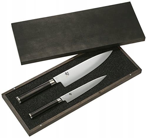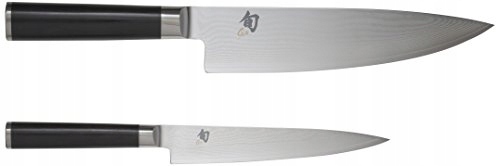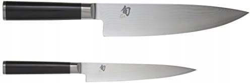 KAI Shun Classic japoński nóż kuchenny 2-częściowy - nóż kuchenny 20 cm długości ostrza + nóż uniwersalny 15 cm długości ostrza - nóż damasceński 32 warstwy VG MAX rdzeń - 61 (±1) HRC - Pakkaholz - zestaw noży kuchennych
