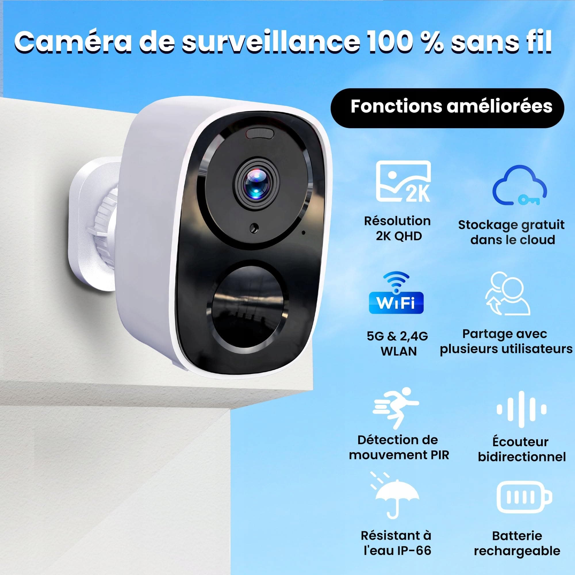 2K/3MP Kamera monitoringu zewnętrznego na akumulator z kartą SD 64G, Darmowa chmura, Bezprzewodowa kamera zewnętrzna WLAN 5GHz/2,4GHz z dwukierunkowym audio, wykrywaniem ruchu, kolorowym trybem nocnym, IP66