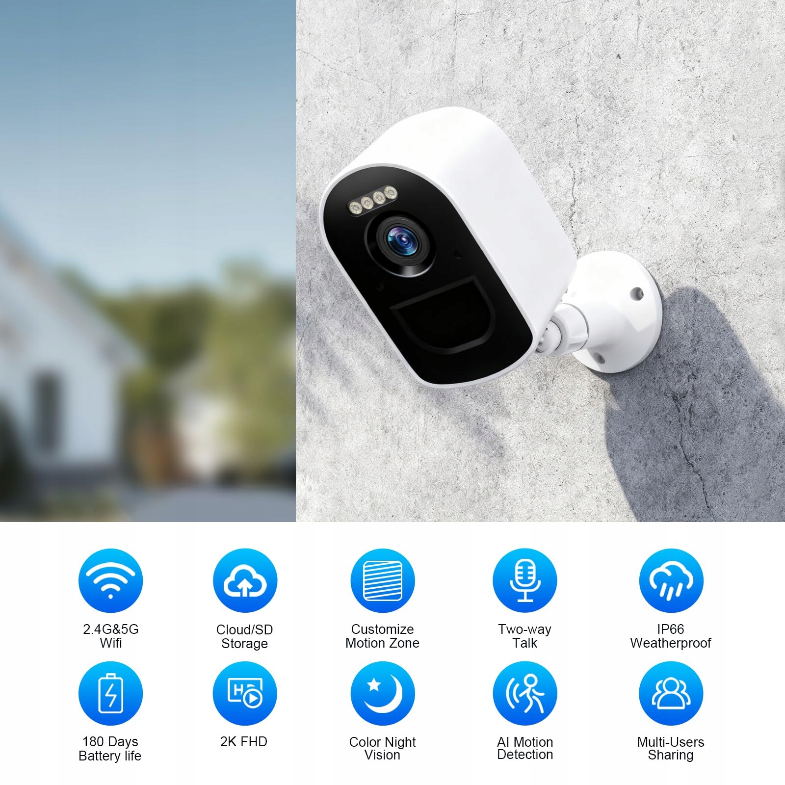 Bezprzewodowe zewnętrzne kamery bezpieczeństwa do domu z detekcją ruchu, kamera zewnętrzna 2K z widzeniem nocnym do monitoringu domu, obsługa pamięci SD/chmury, kamery bezpieczeństwa WiFi zasilane baterią do monitoringu wewnątrz i na zewnątrz